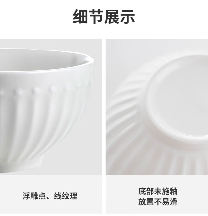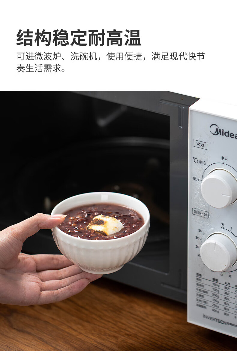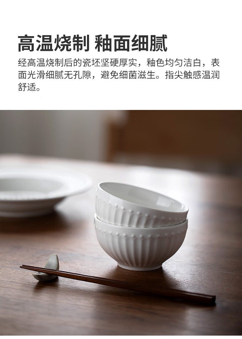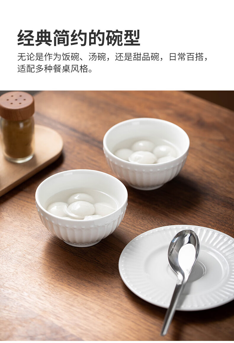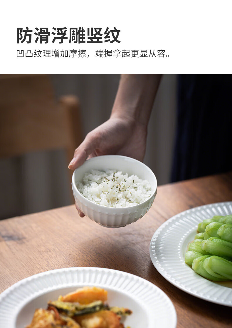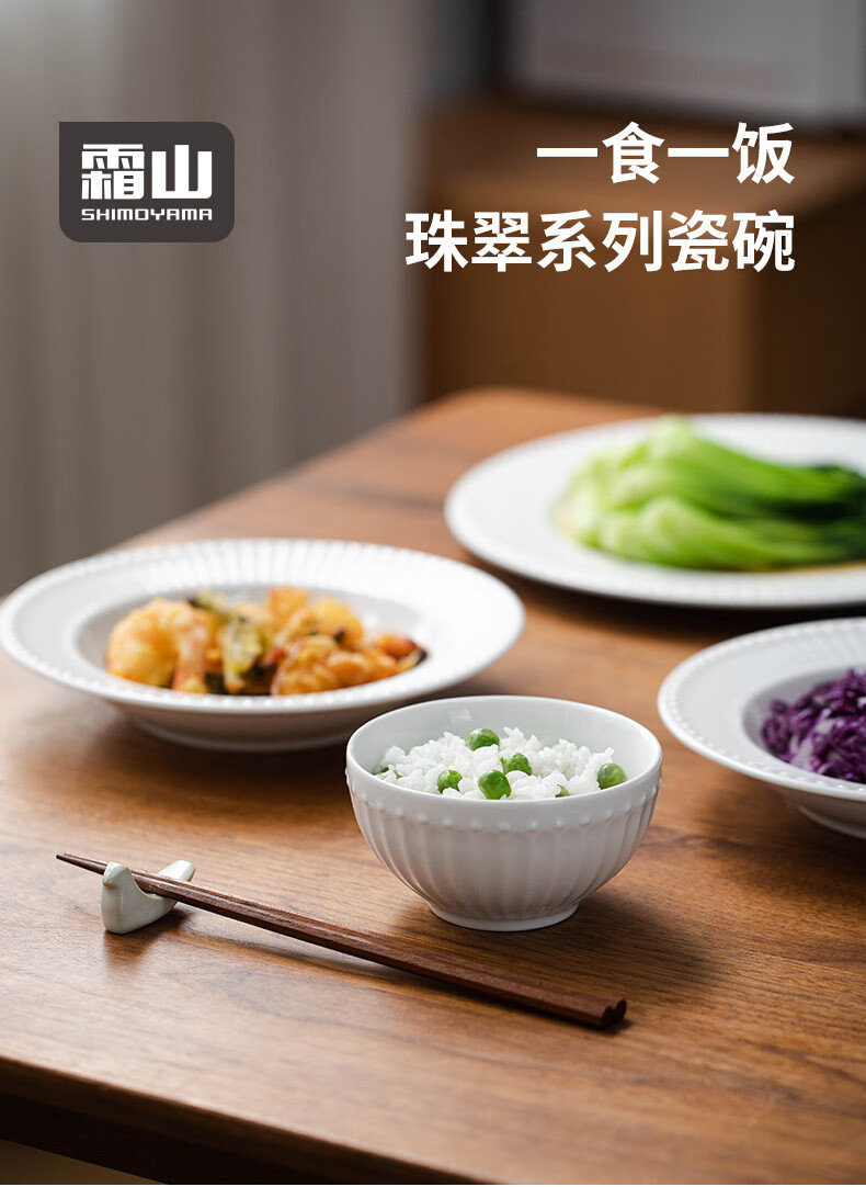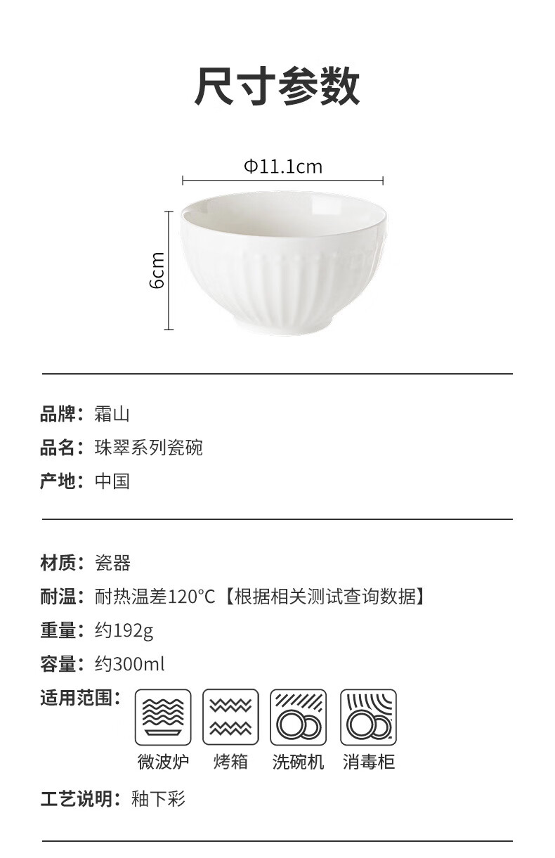 霜山米饭碗珠翠系列小汤碗家用吃饭碗微波炉可用浮雕条纹甜品碗 【300ml】1个 洗碗机可用