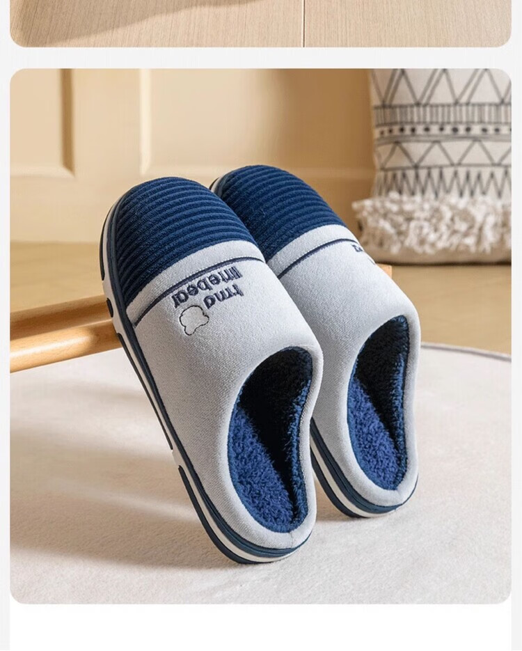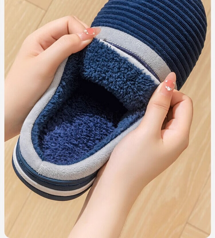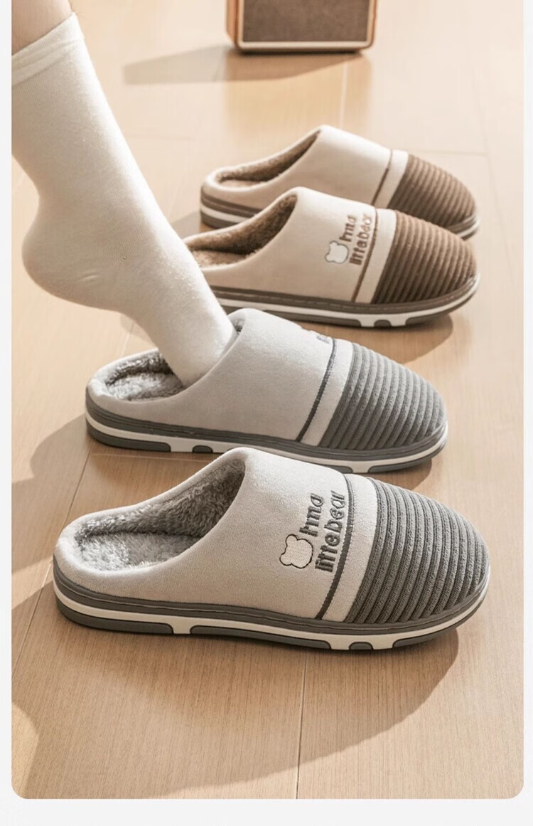 AILUKI日本拖鞋女新款室内居家用冬季保暖买一送一情侣PVC(聚氯乙烯) 粉白蝴蝶结+黑色条纹 36 _37码+40_41码