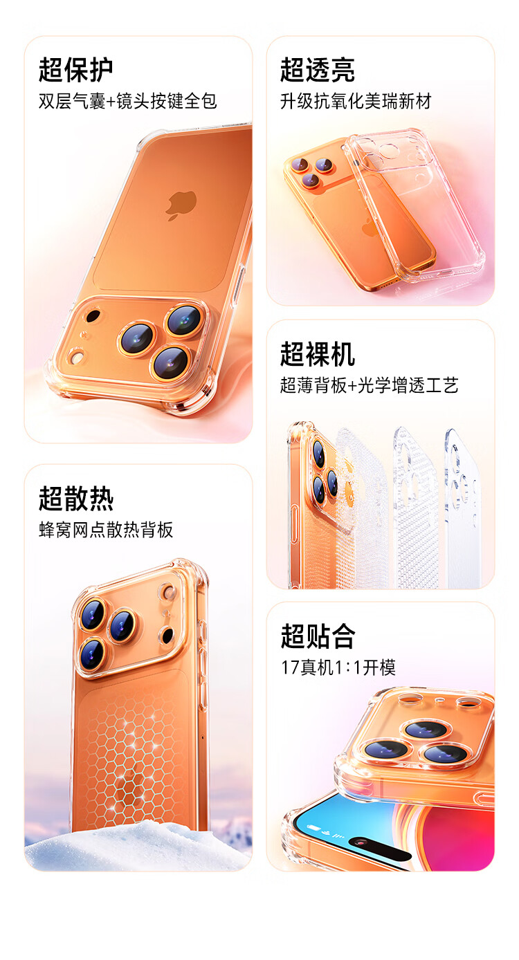 绿联适用苹果17ProMax手机壳 iPhone17ProMax气囊防摔保护套超薄镜头全包透明软壳抗黄防磨男女同款 晶透原护系列 iPhone 17