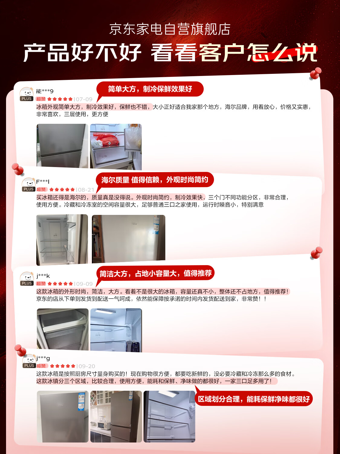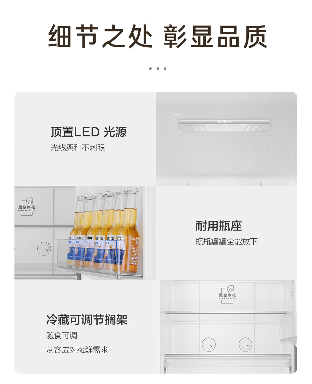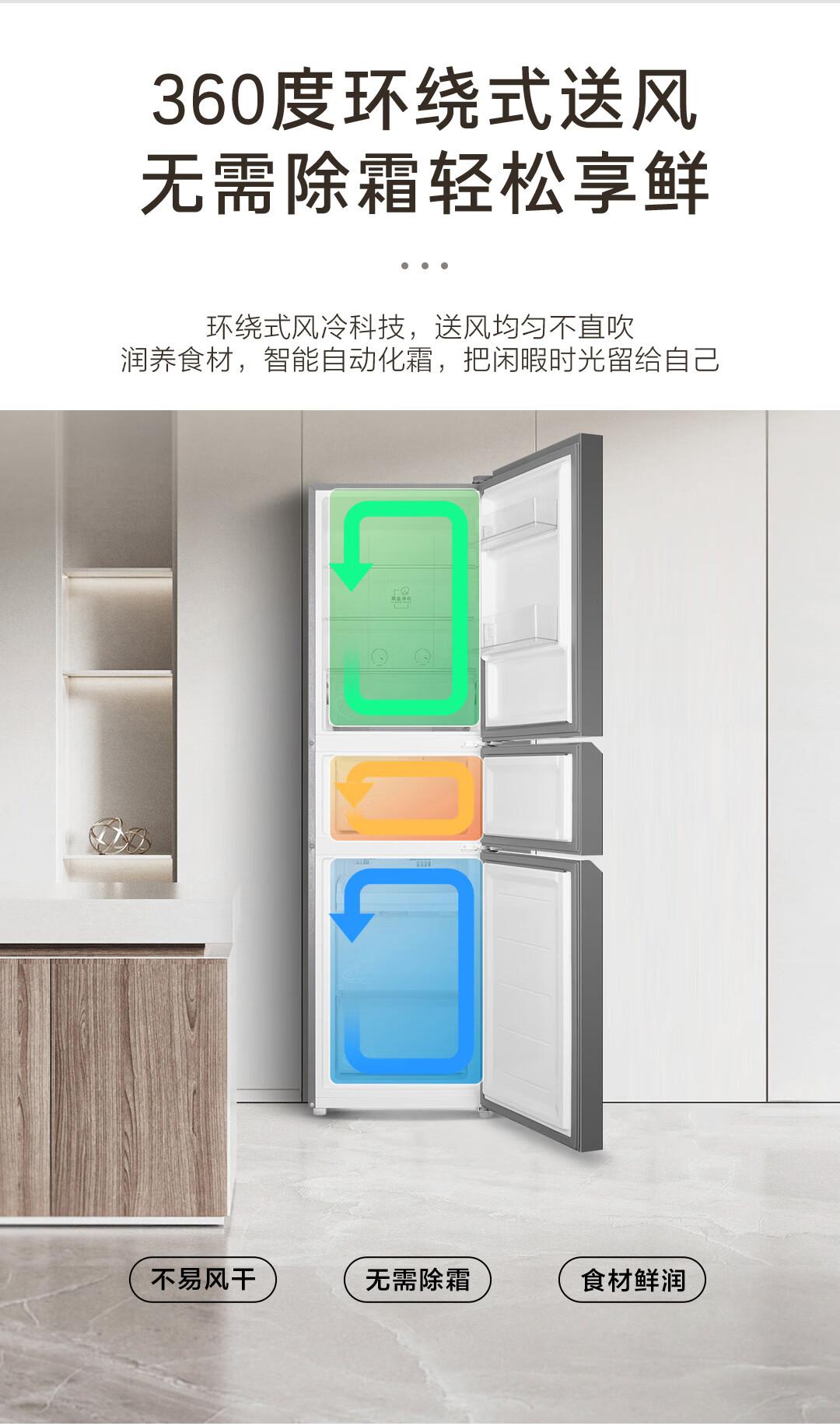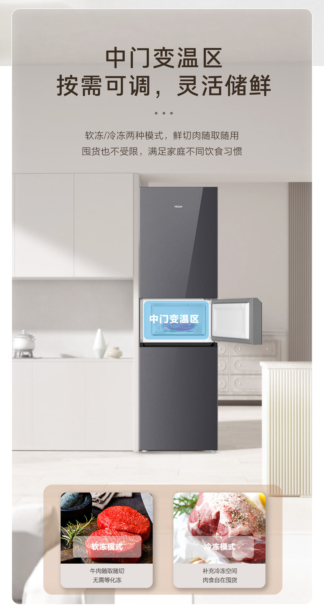 统帅(Leader)海尔出品三门三温三开门家用电冰箱218升 一级双变频风冷无霜黑金净化宿舍租房办公室国家补贴20% 【省电王】2天仅约1度电 冰箱