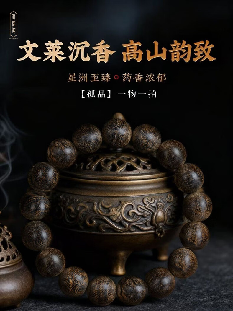 优锦纯文莱正区老料全沉水沉香手串男士高端天然野生文玩手链送礼收藏级 传世孤品,一物一拍