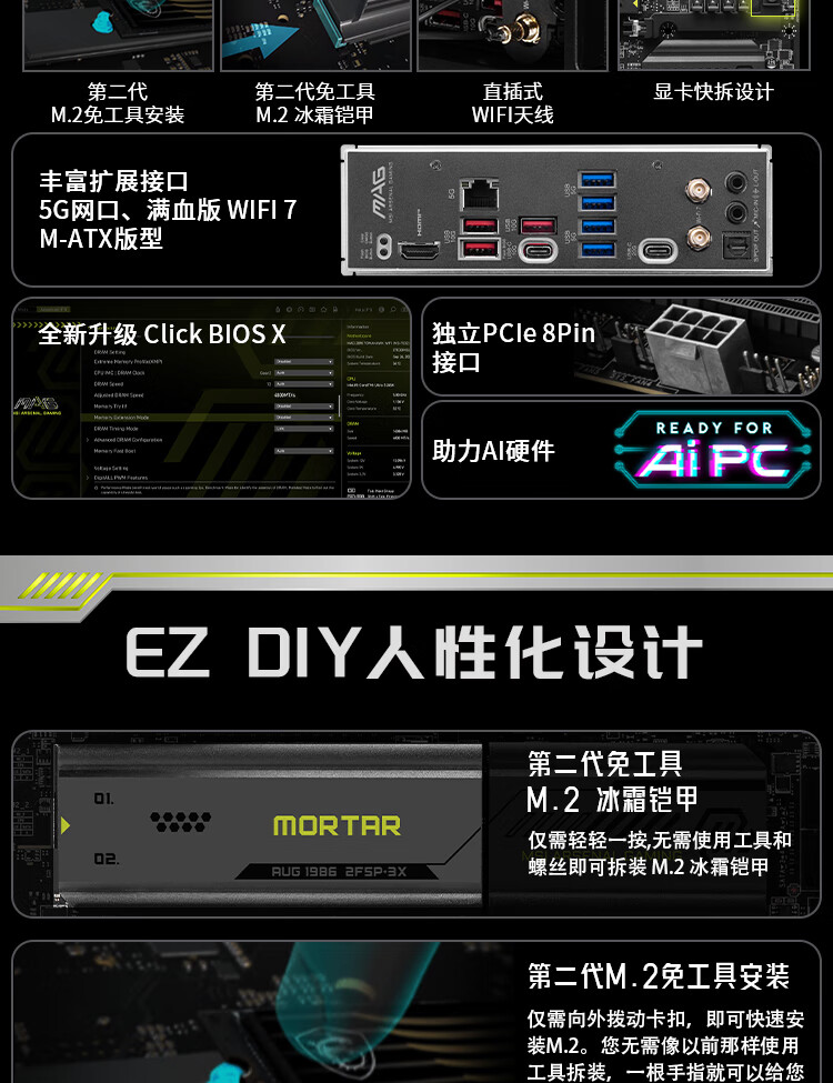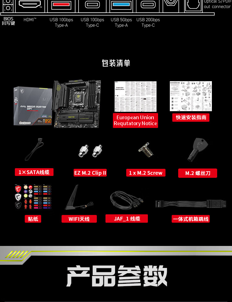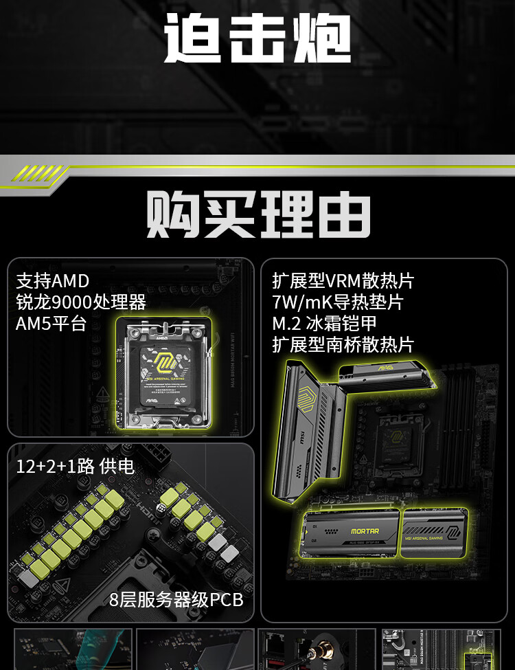 微星(MSI)MAG B850M MORTAR WIFI7迫击炮主板 5G网口 支持CPU 9950X/9800X3D/9700X/9600X(AMDB850/AM5接口)