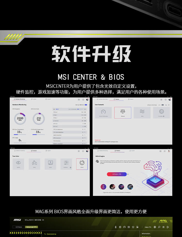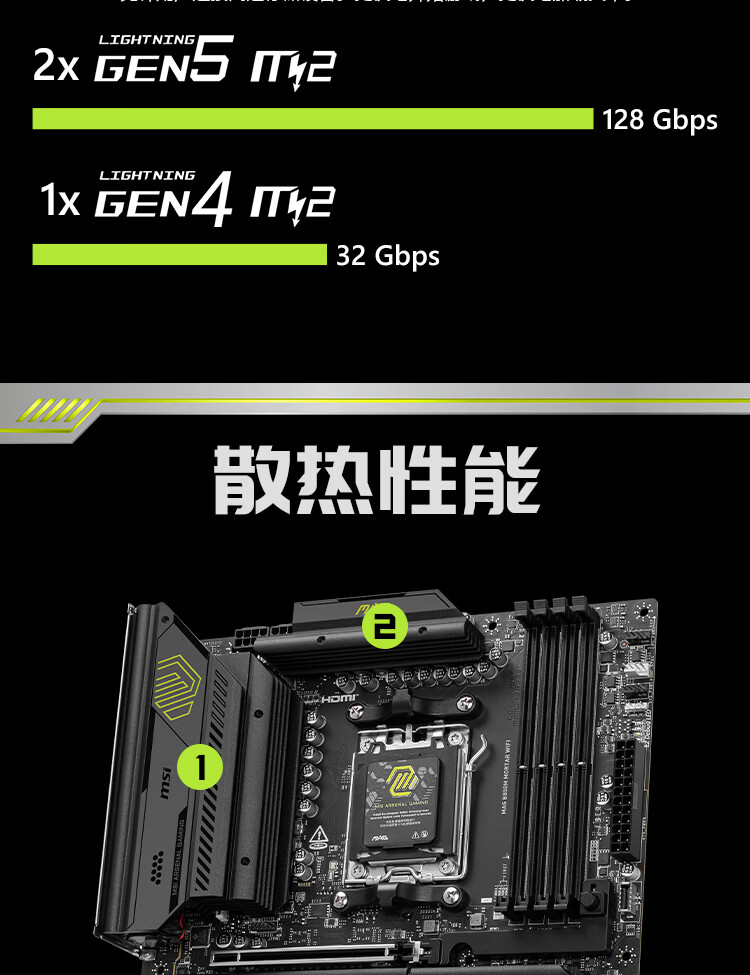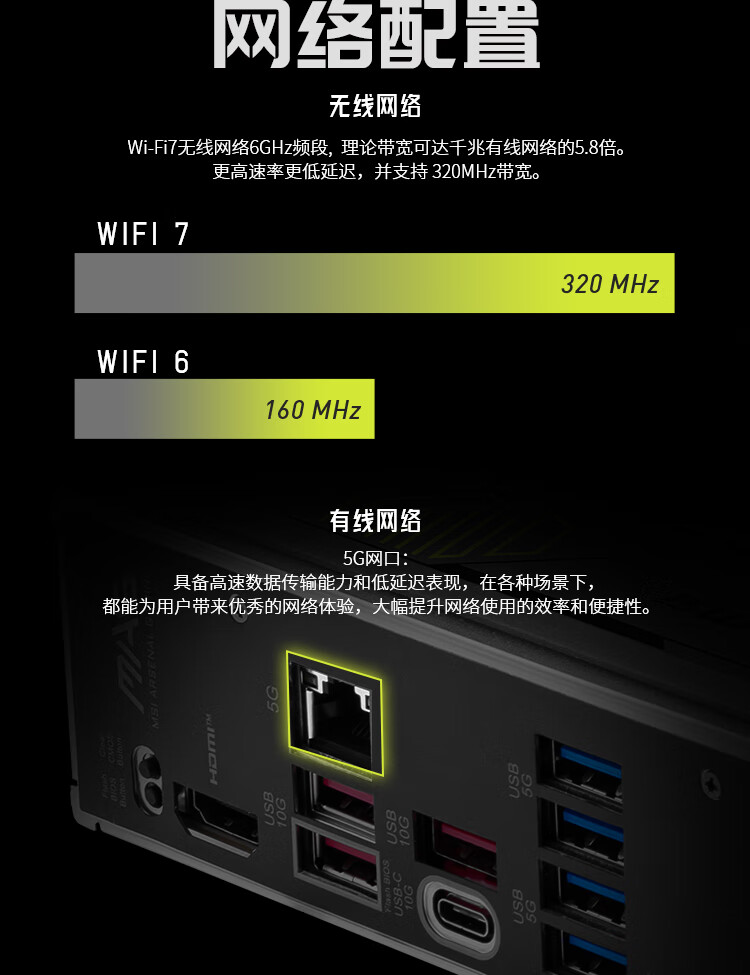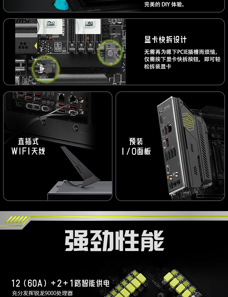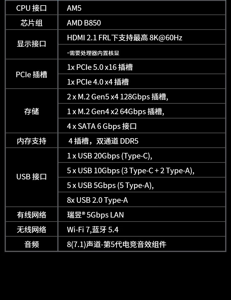 微星(MSI)B850M GAMING PLUS WIFI7主板 5G网口 支持CPU 9800X3D/7800X3D/9700X/9600X/(AMD B850/AM5接口)