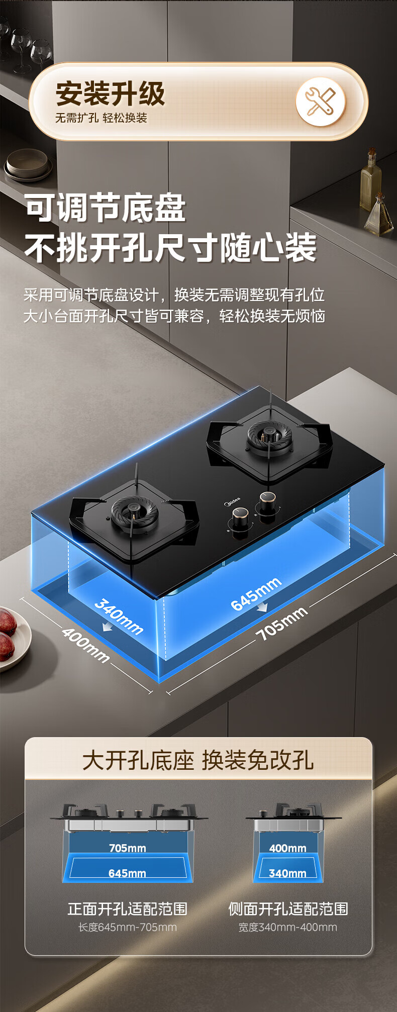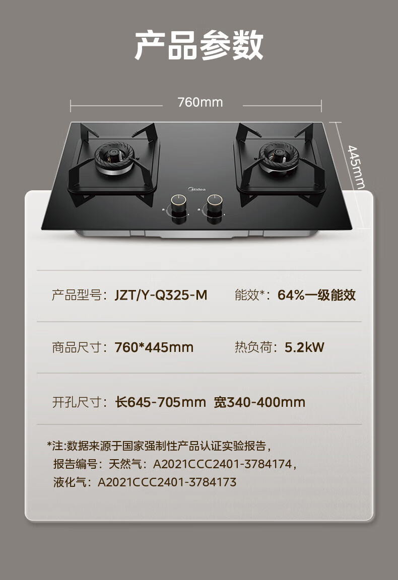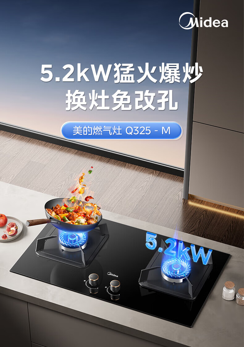 美的(Midea)燃气灶双灶具 家用5.2kW大火力猛火灶台嵌两用 钢化玻璃面板双灶天然气灶 一级能效厨房灶具Q325 (天然气)5.2KW猛火灶台嵌两用