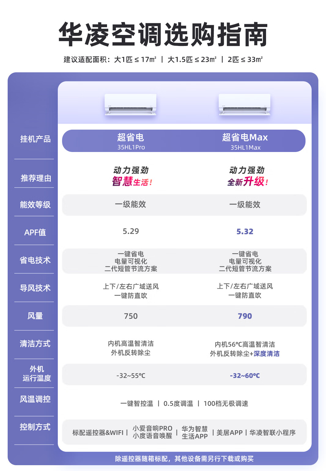 华凌空调大1.5匹 超省电Max新一级能效变频冷暖挂机 1.5匹 一级能效 35HL1Pro 超省电PRO