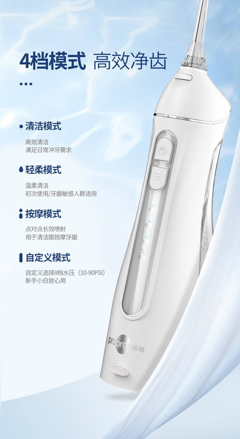 博皓(prooral)冲牙器便携式牙齿冲洗器家用洗牙器洁牙器水牙线正畸清洁器牙结石牙垢清洁器 送学生情侣朋友 5025 晶莹透