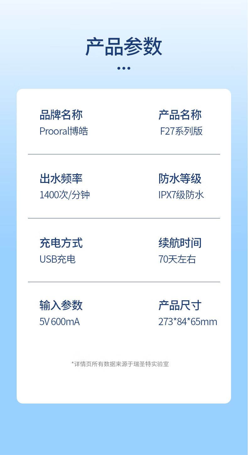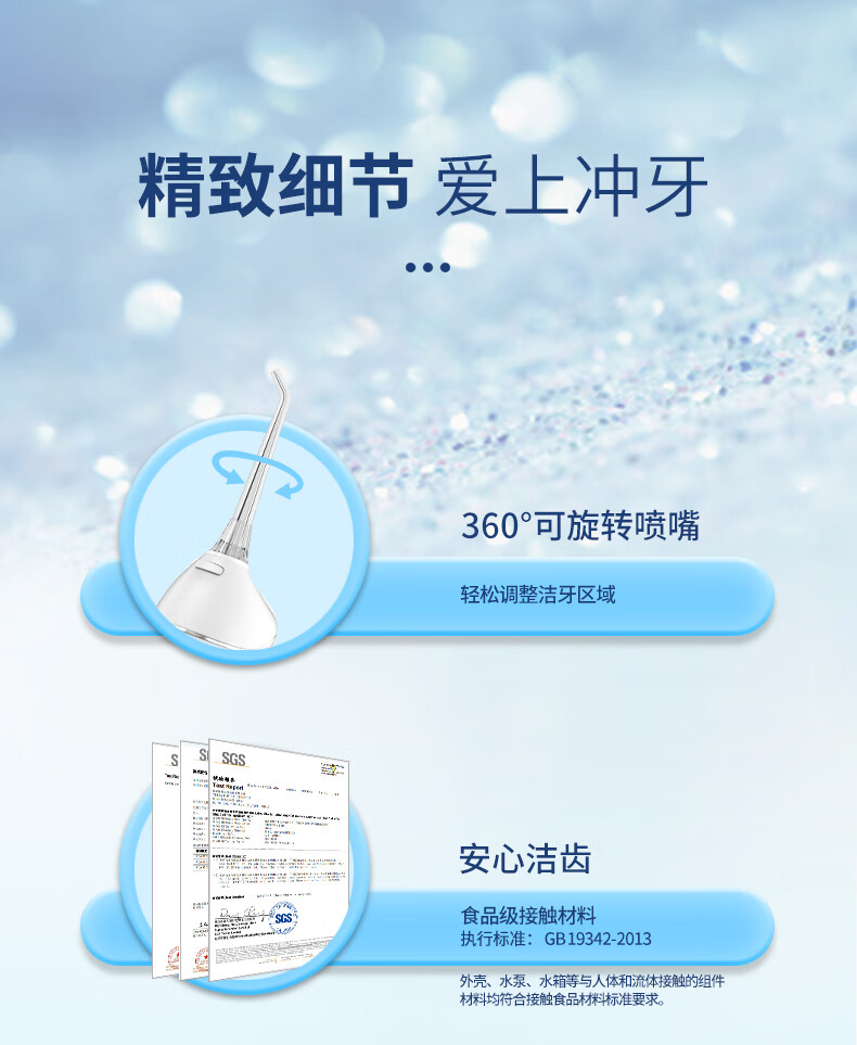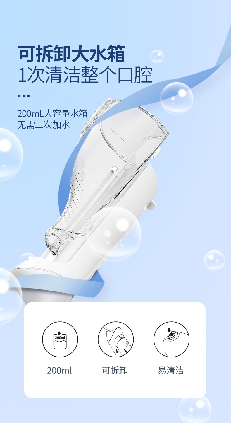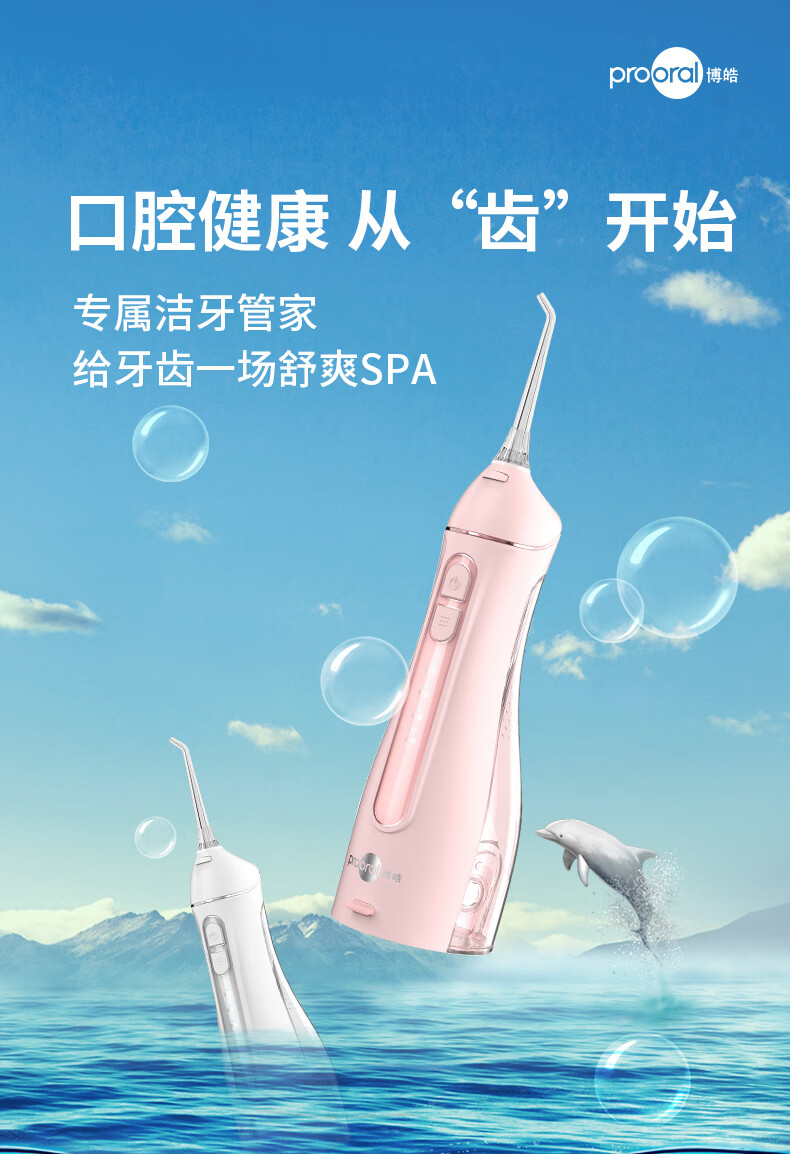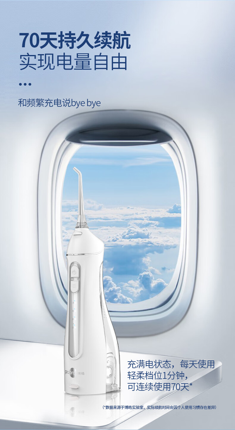 博皓(prooral)冲牙器便携式洗牙器家用洁牙器水牙线牙齿冲洗器正畸专用牙龈敏感清洁器 热门商品生日礼物 5025 天空蓝|6支喷嘴|200ml水箱
