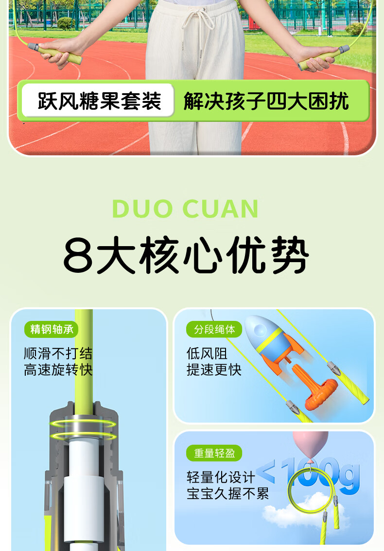 跃风轴承跳绳儿童小学生专用竞速跳绳6-12岁初中生体侧考试成人绳子 赠送专业跳绳卡【勿下单】