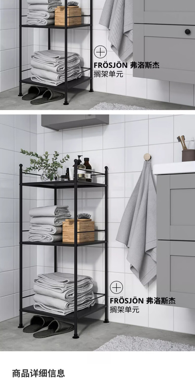 宜家(IKEA)FROSJON弗洛斯杰推车卫生间浴室落地厨房带轮收纳小推车 黑色推车55x35cm
