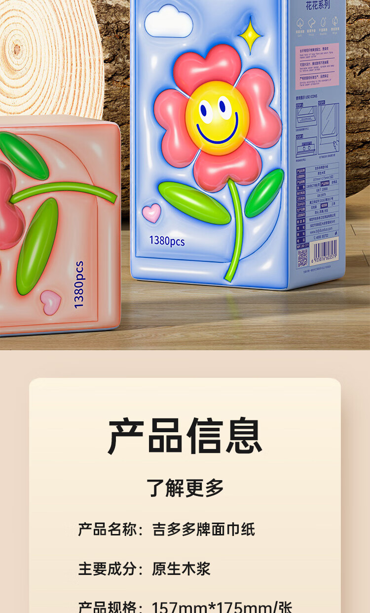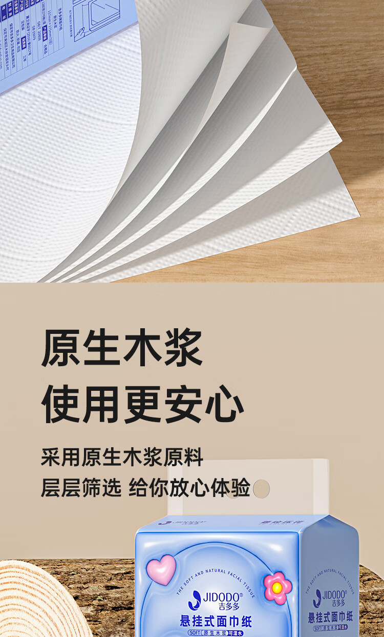 吉多多悬挂式抽纸5层1380张*6提 家用餐巾纸面纸巾原生木浆卫生纸