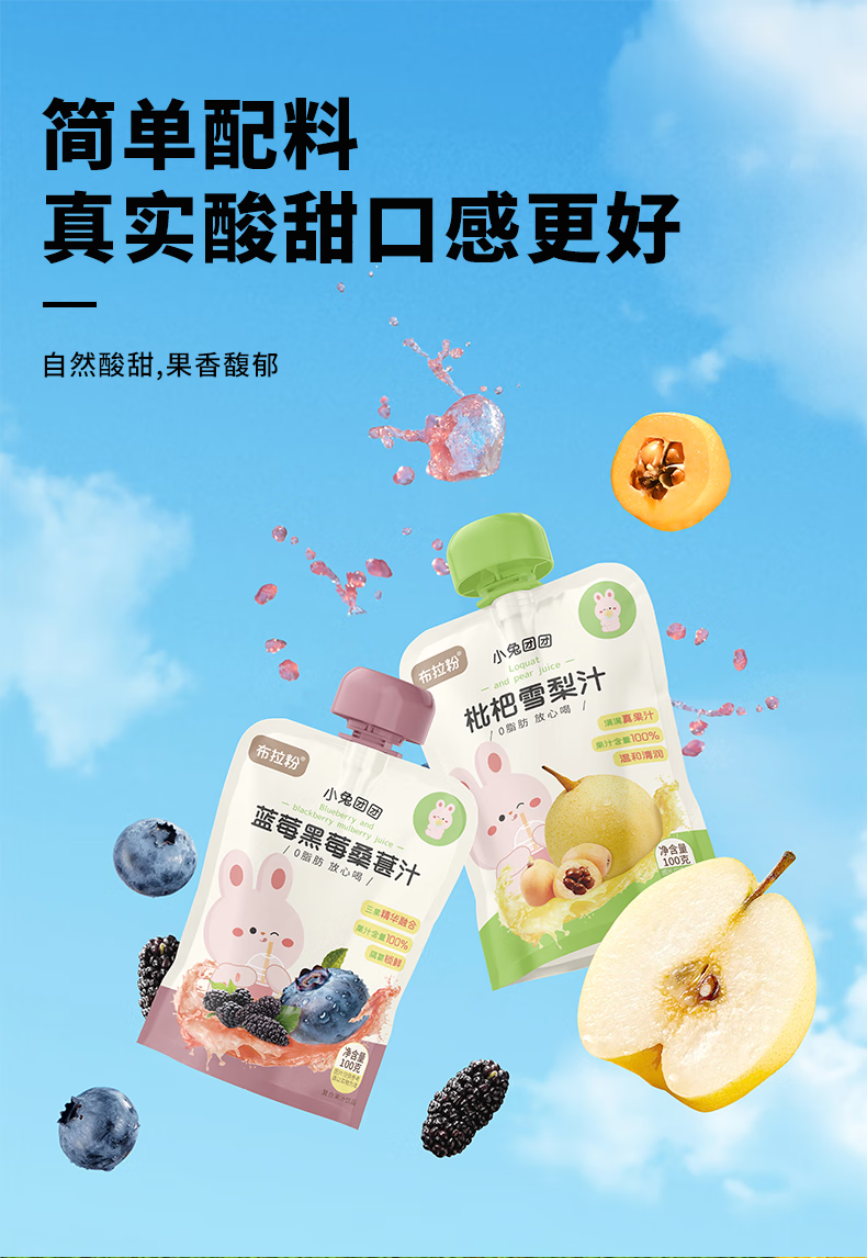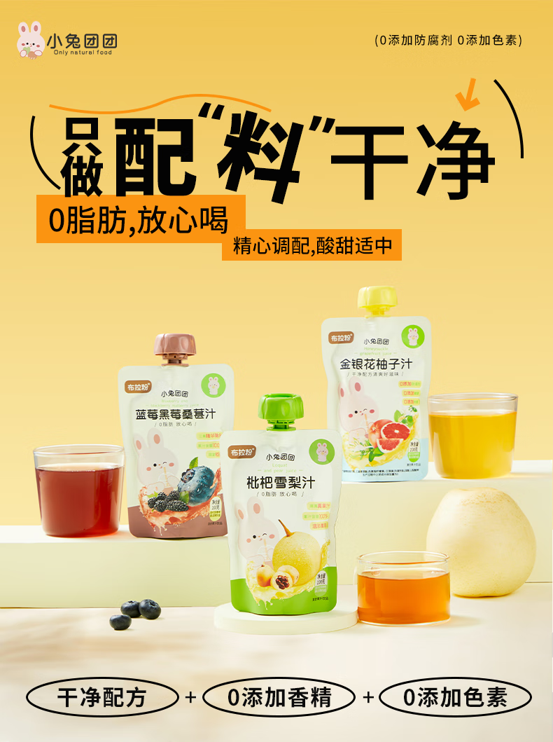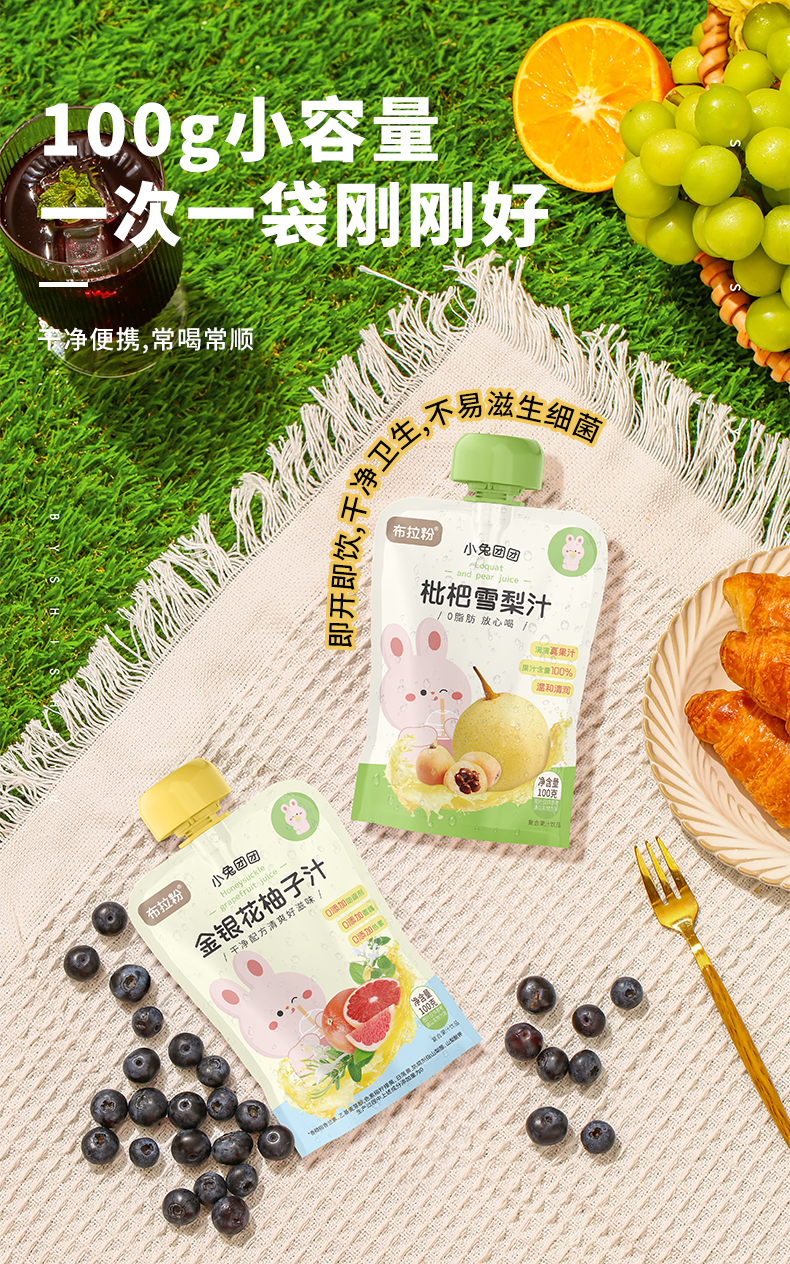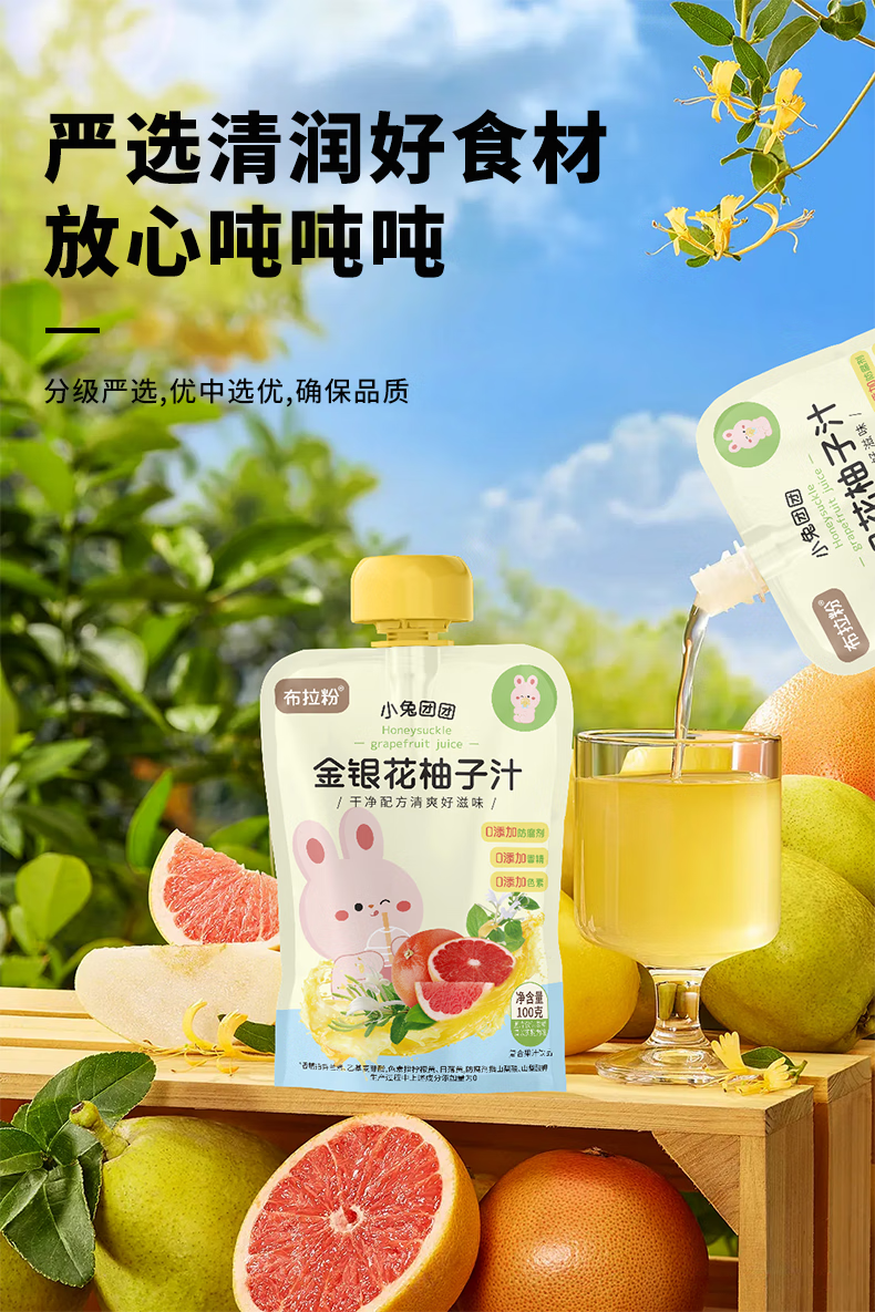布拉粉小兔团团金银花柚子汁宝宝果汁儿童雪梨汁零食清润酸甜口感 【20袋】金银花柚子汁*10+雪梨汁*10