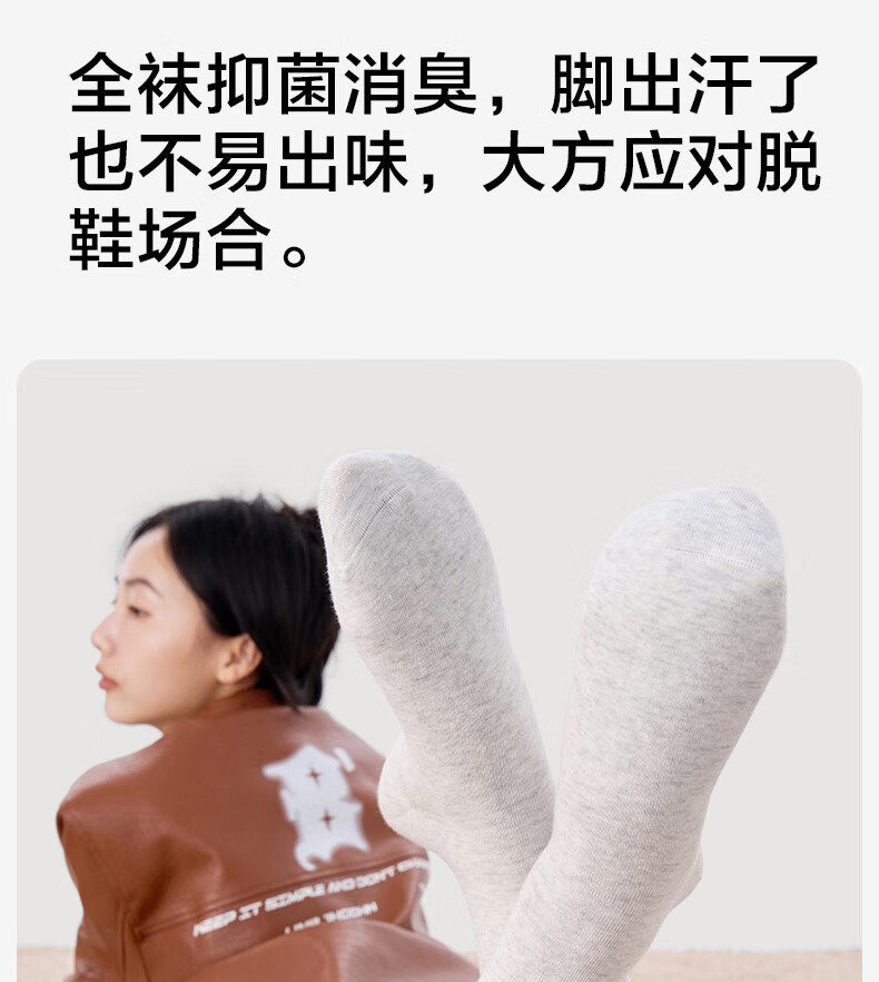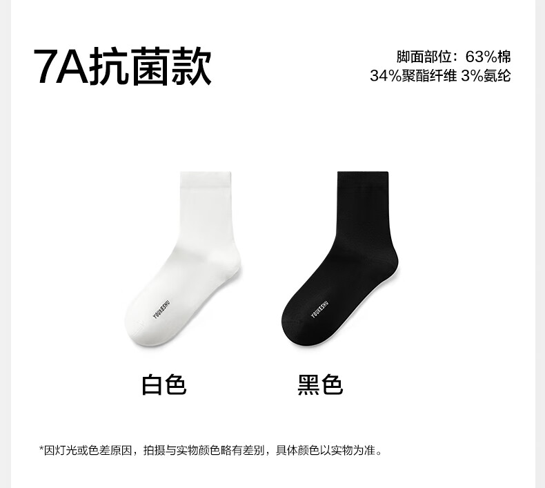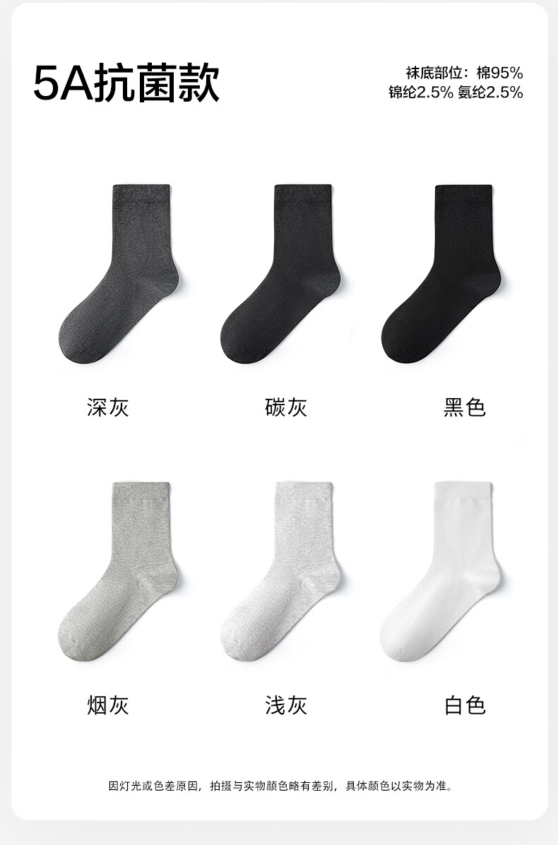 有棵树女士袜子女中筒袜抑菌防臭吸汗透气舒适黑白色基础百搭长袜 【7A抗菌】黑+黑+黑+黑+黑+白+白 7双 均码