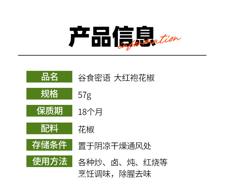 谷食密语大红袍花椒57g 红花椒炖肉料香辛料麻椒藤椒火锅调料底料
