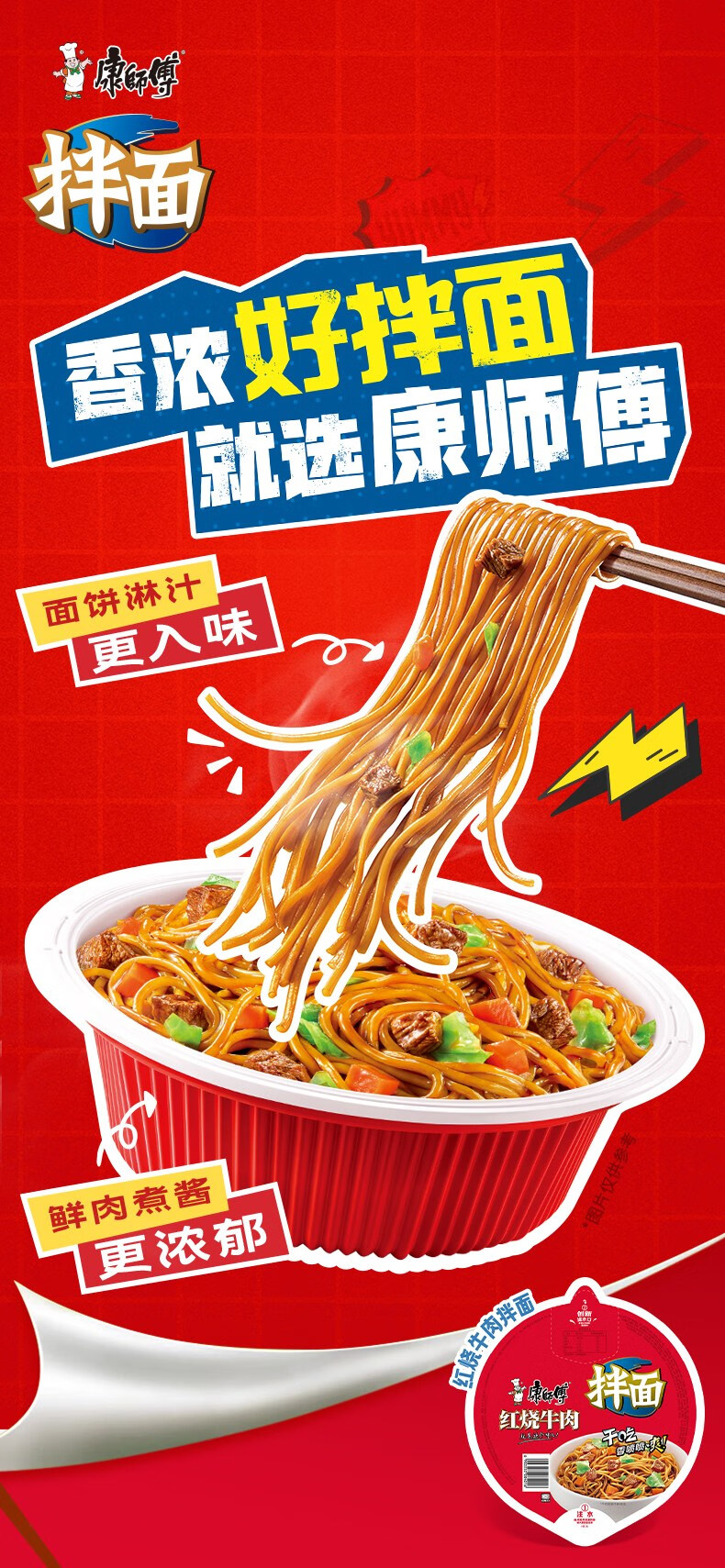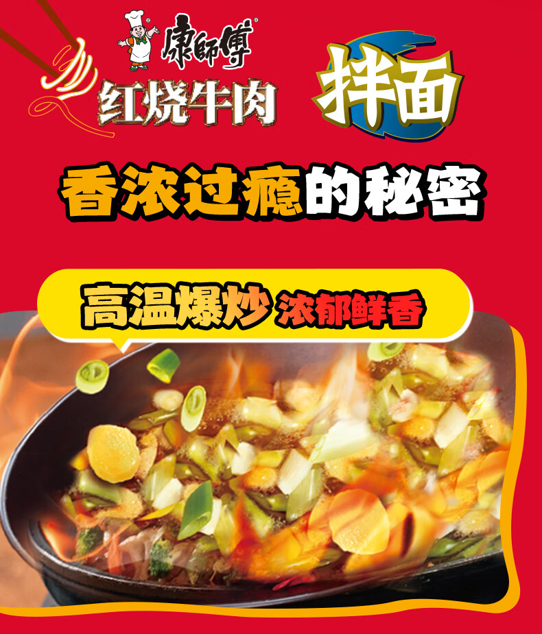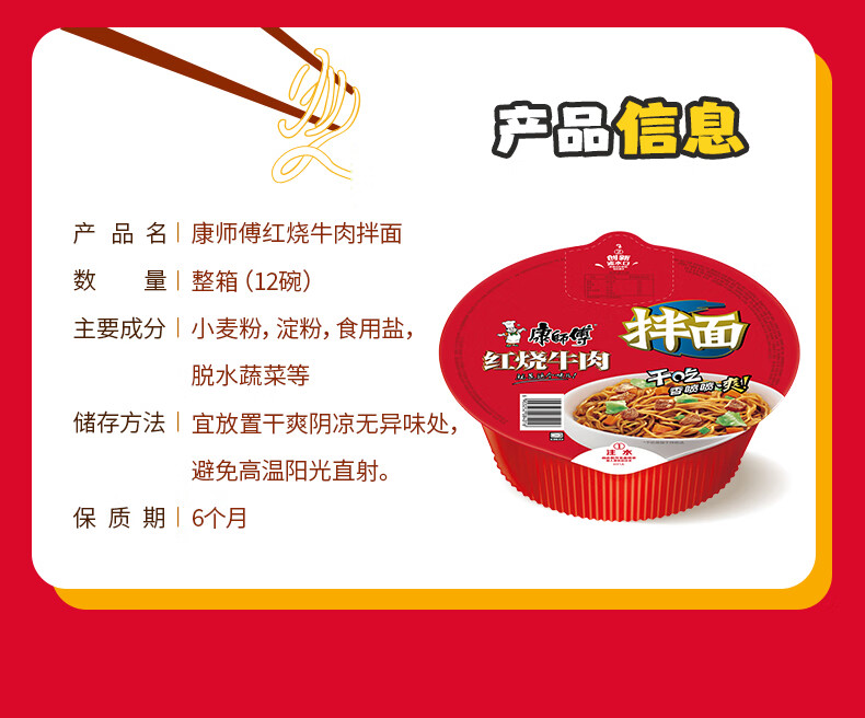 康师傅方便面 经典干拌面 红烧牛肉面110g*12盒 泡面整箱速食 方便食品