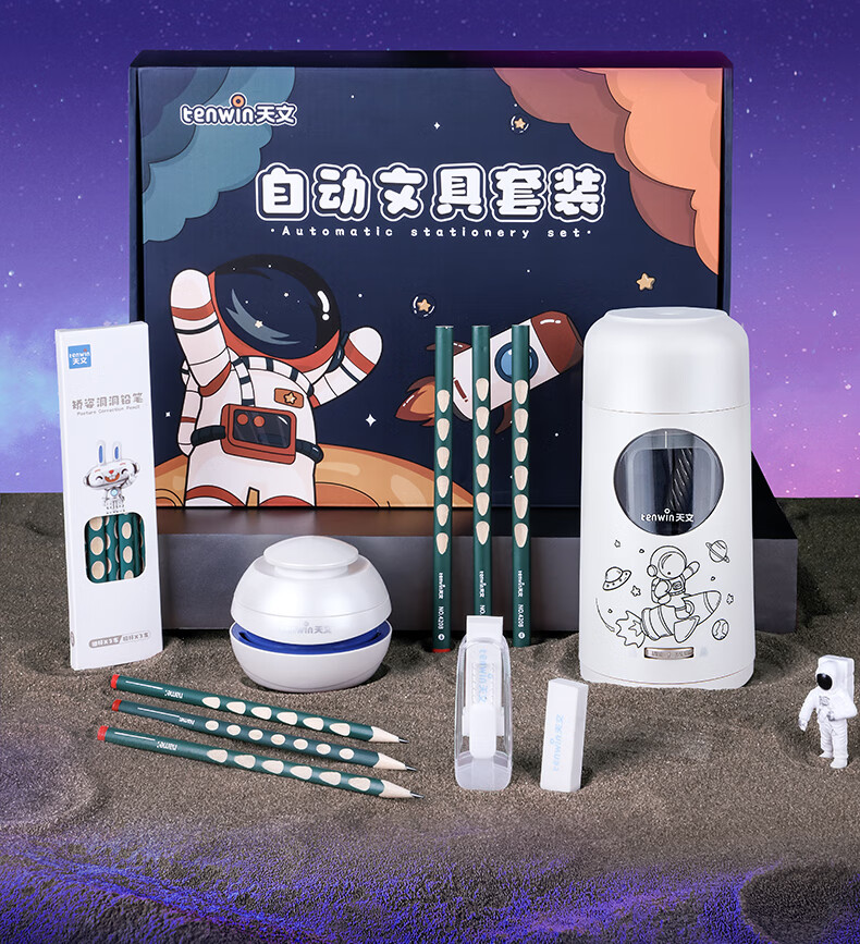 天文升级全自动大口径削笔机电动文具礼盒儿童节日礼物小学生削笔器卷笔转笔刀学习套装TZ6806-2