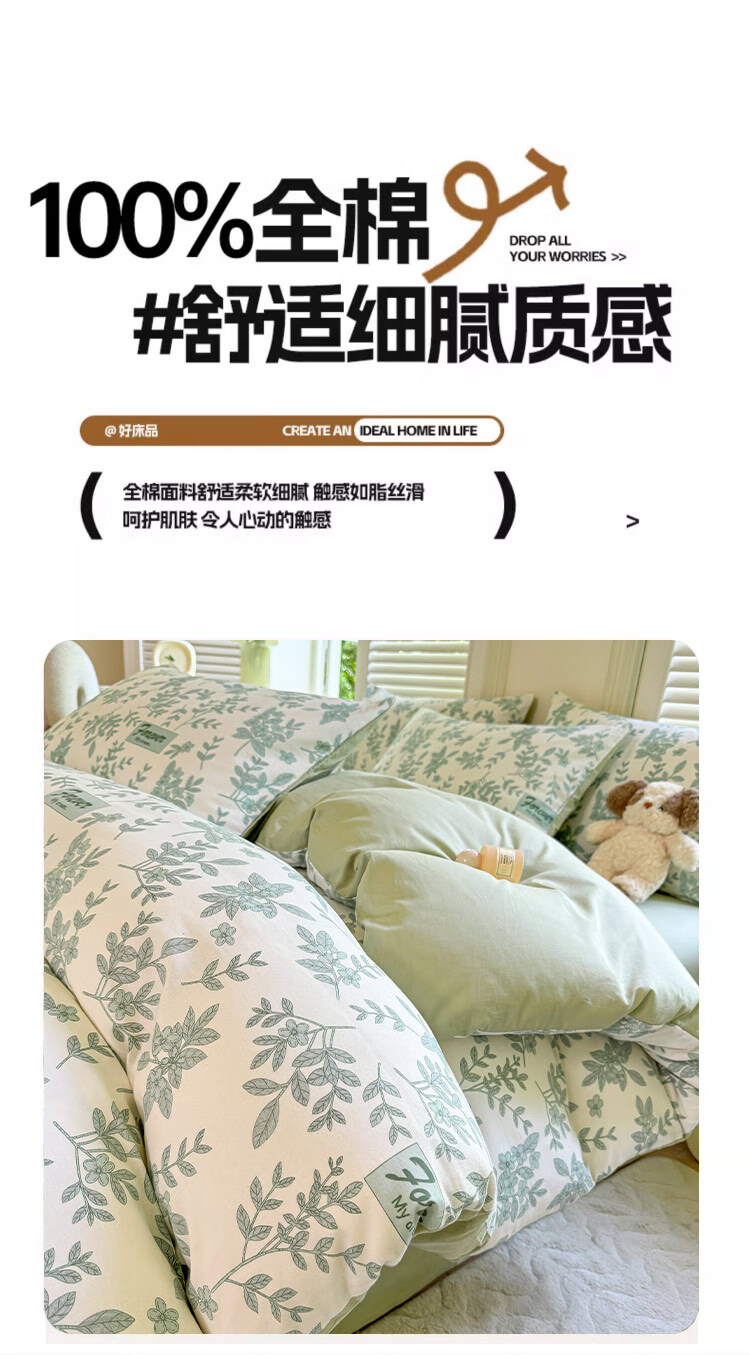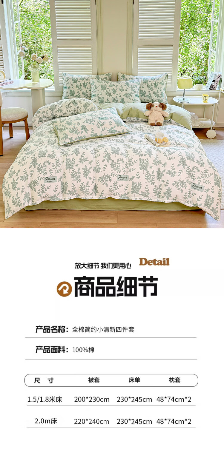 无印良品100%全棉四件套长绒棉双人床上用品被套200*230cm 1.5/1.8米床