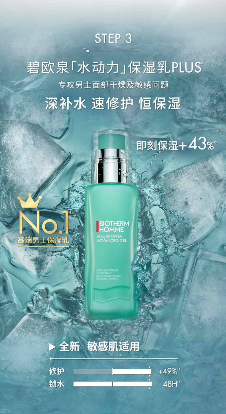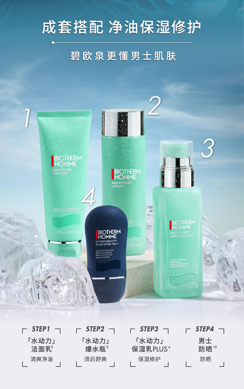 碧欧泉男士水动力洗面奶125ML+水200ML+乳75ML礼盒生日礼送男友中秋礼品