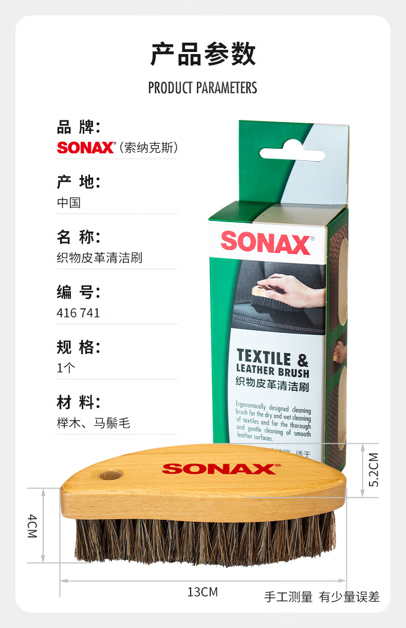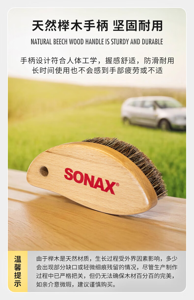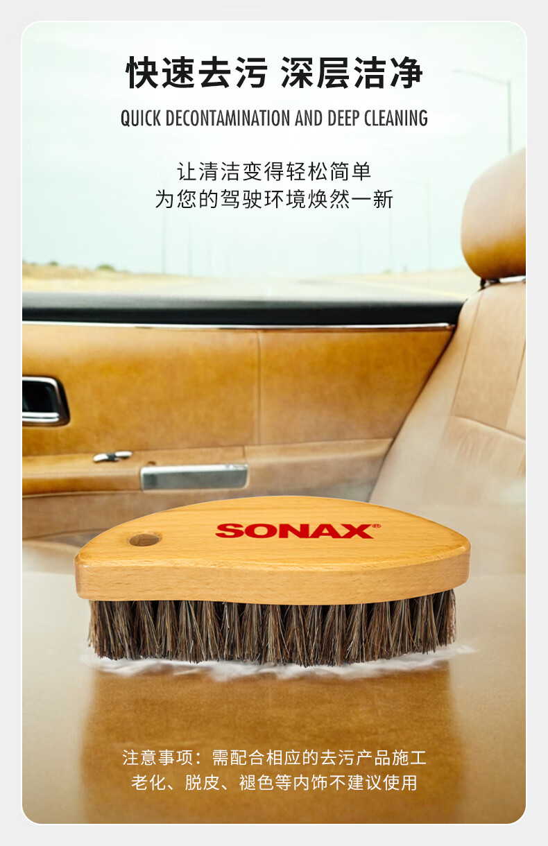 索纳克斯(SONAX)皮革清洁刷马鬃毛光面皮革刷真皮座椅刷子汽车内饰清洗工具 【马鬃毛材质】皮革内饰清洁刷
