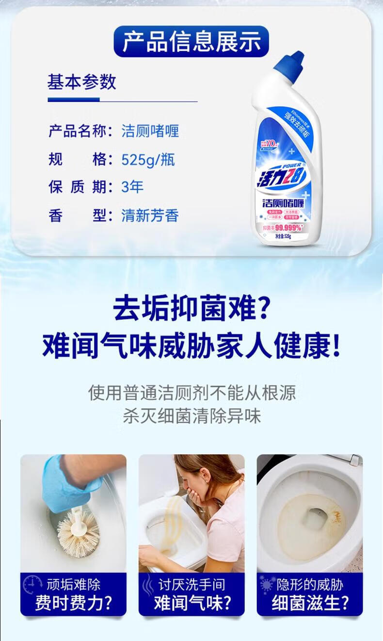 活力28洁厕啫喱525g洁厕液强效去味清香型马桶清洁剂强力去垢 5瓶装