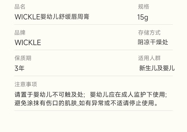 WICKLE婴儿唇周膏护理滋润乳液舒缓保湿霜宝宝专用口水膏护理膏 唇周膏15g
