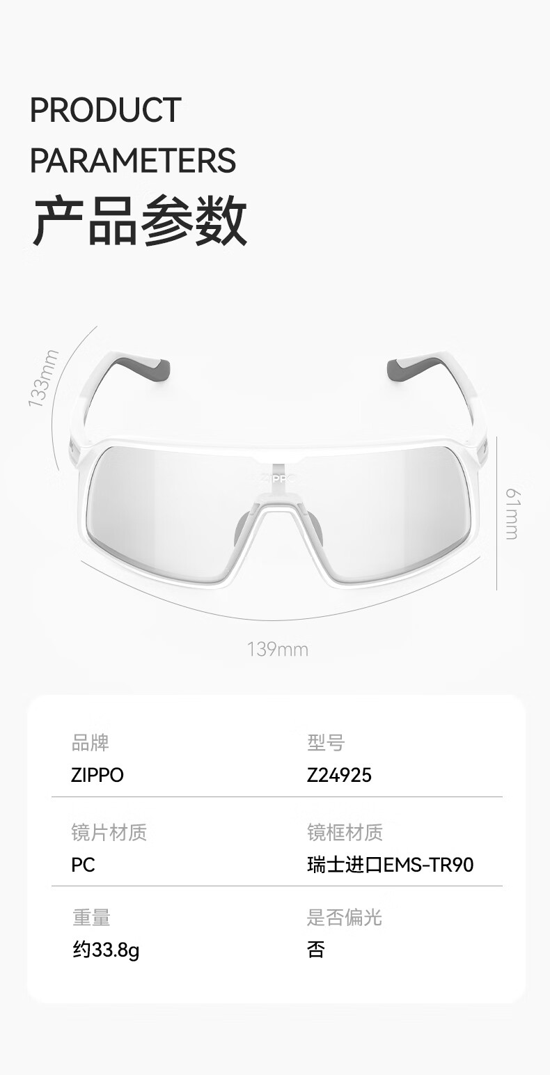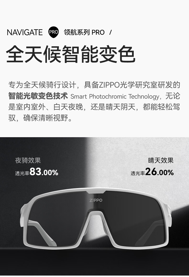 ZIPPO美国日夜两用变色骑行眼镜太阳镜户外跑步运动护目24925C2-73