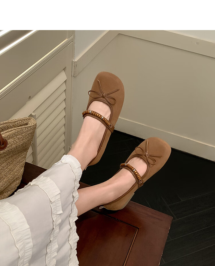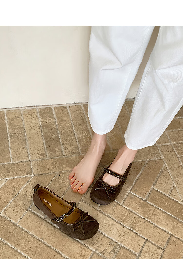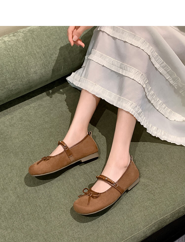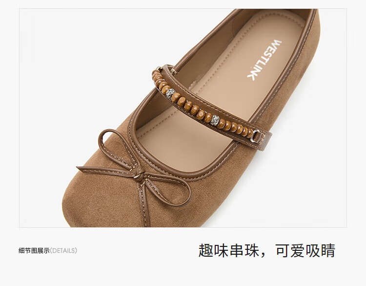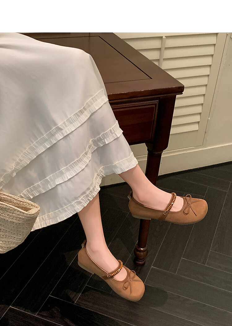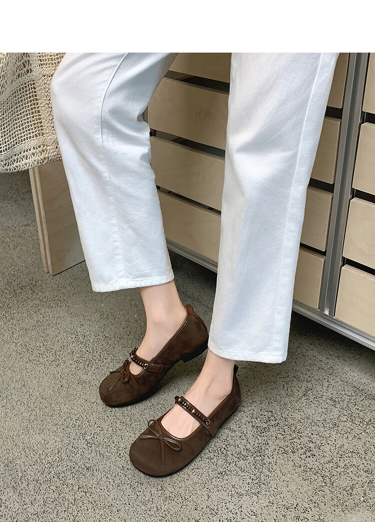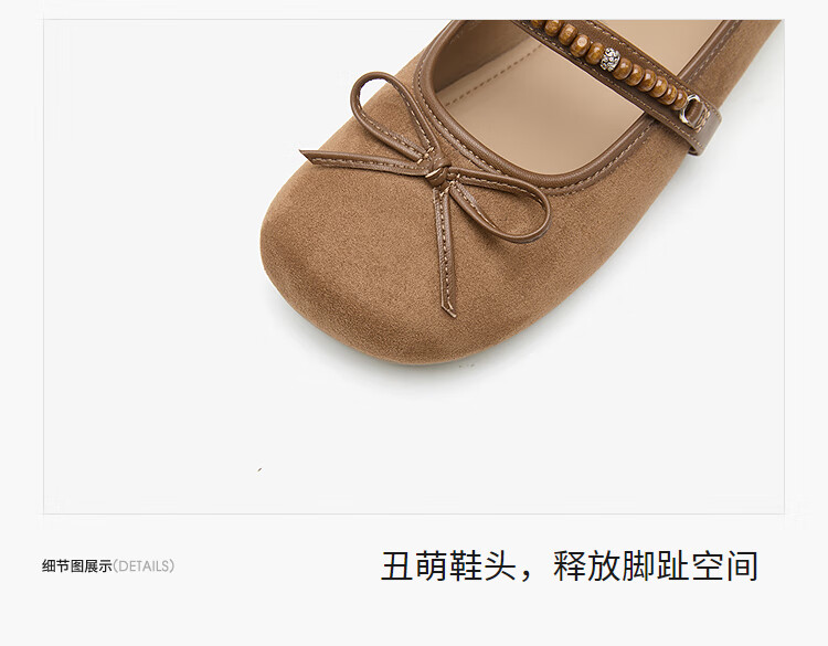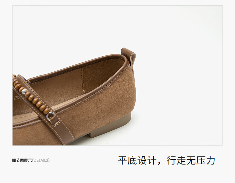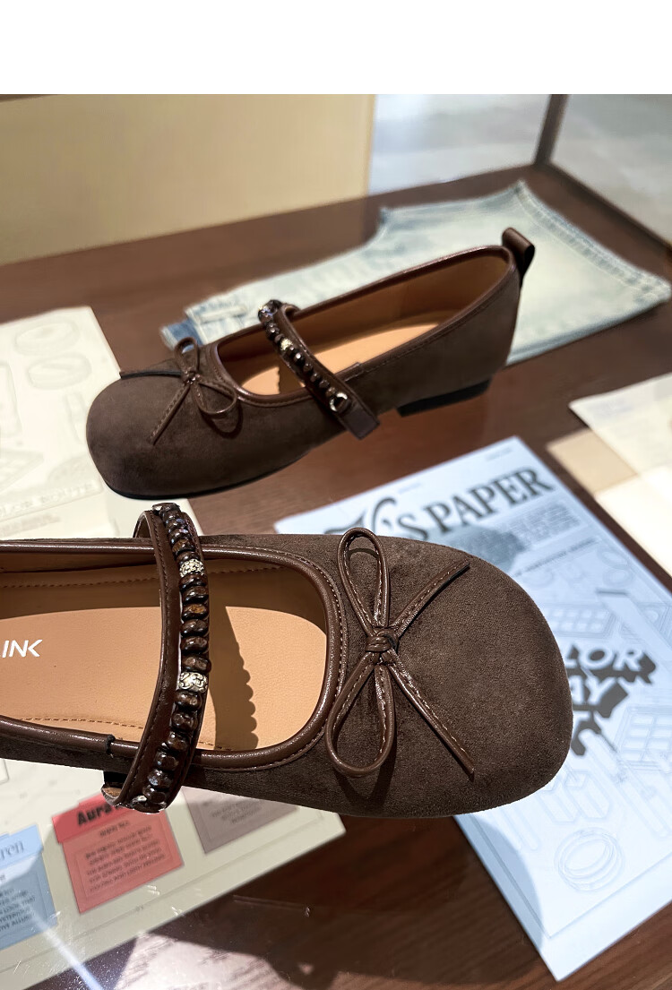西遇平底芭蕾鞋女2025新款秋季波西米亚复古圆头玛丽珍鞋棕色单鞋 棕色 38 (240)