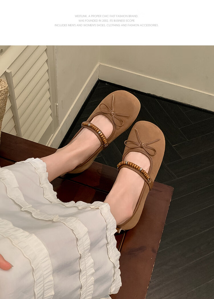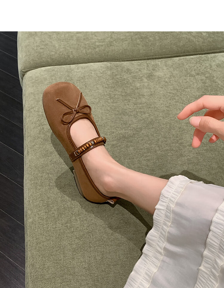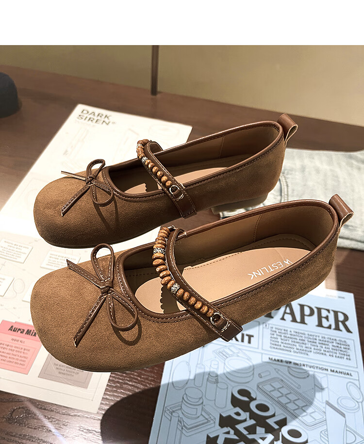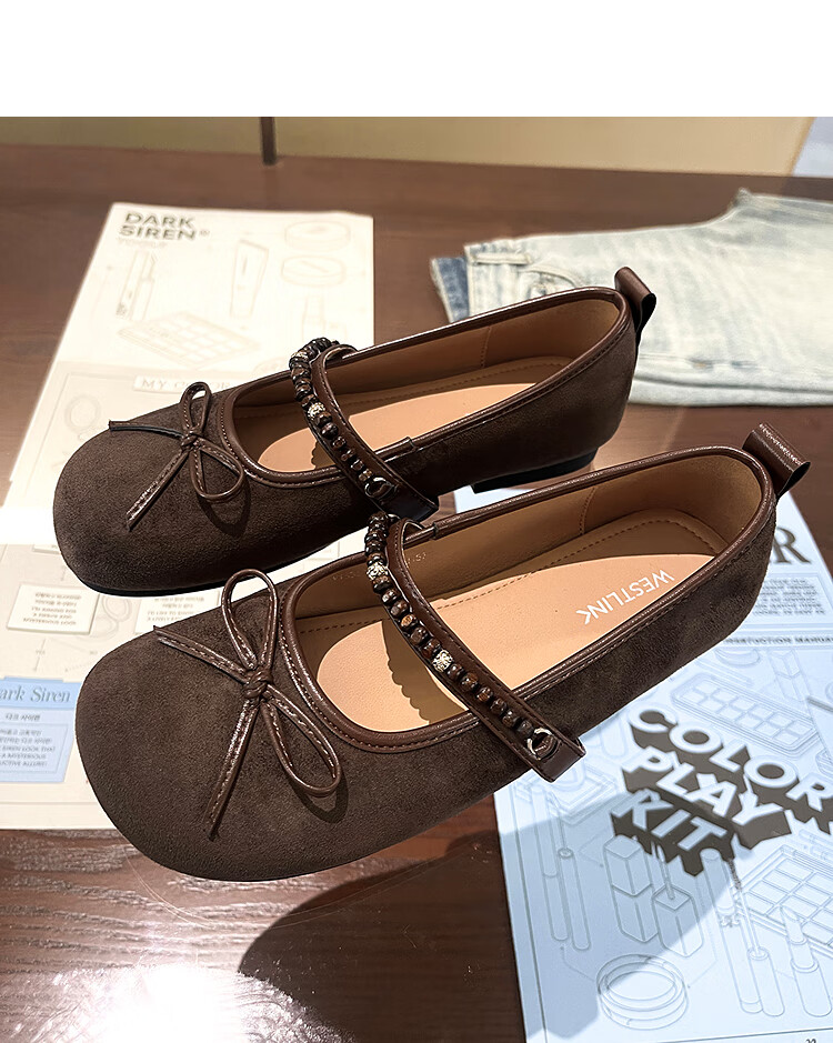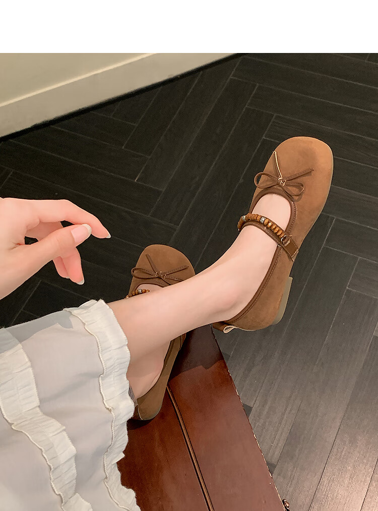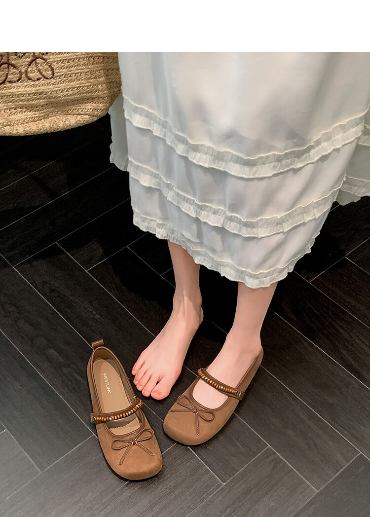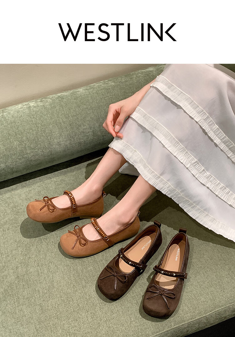 西遇平底芭蕾鞋女2025新款秋季波西米亚复古圆头玛丽珍鞋棕色单鞋 棕色 38 (240)