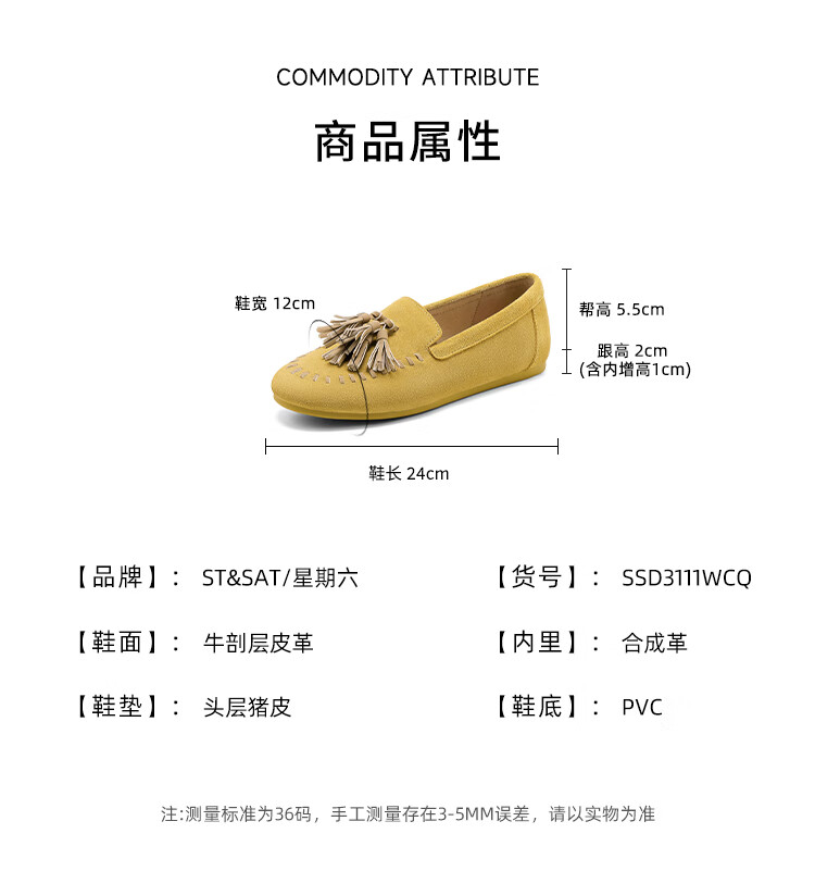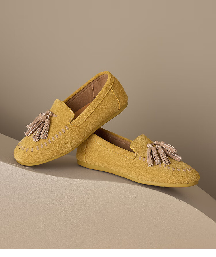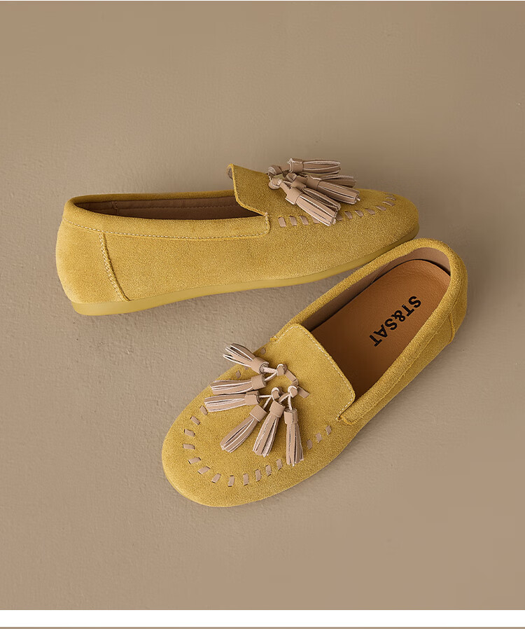 星期六圆头一脚蹬豆豆鞋2025秋季新款百搭舒适休闲时装女鞋MTSSD3111WCQ 黄色 39