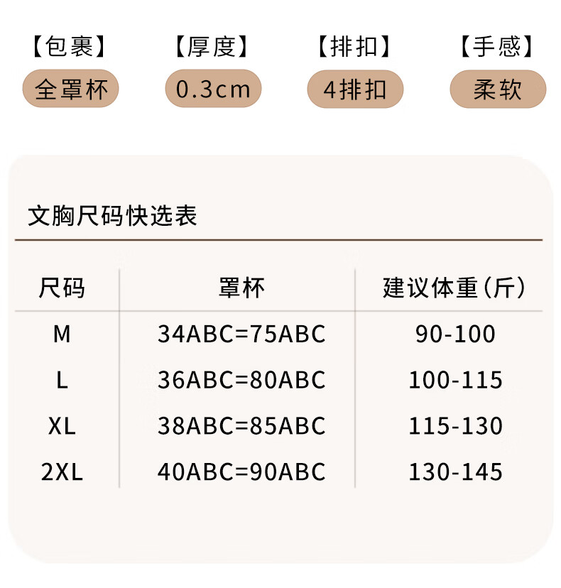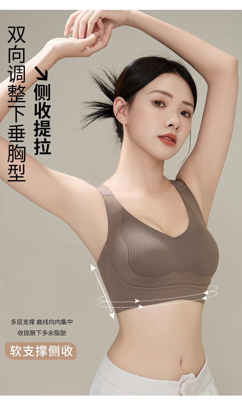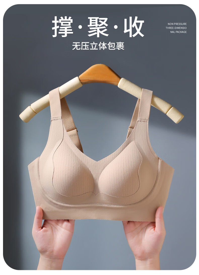 chunnian内衣女大胸聚拢显小提拉上托防下垂显瘦双重侧收副乳无痕文胸 MWY-6080-香槟 2XL