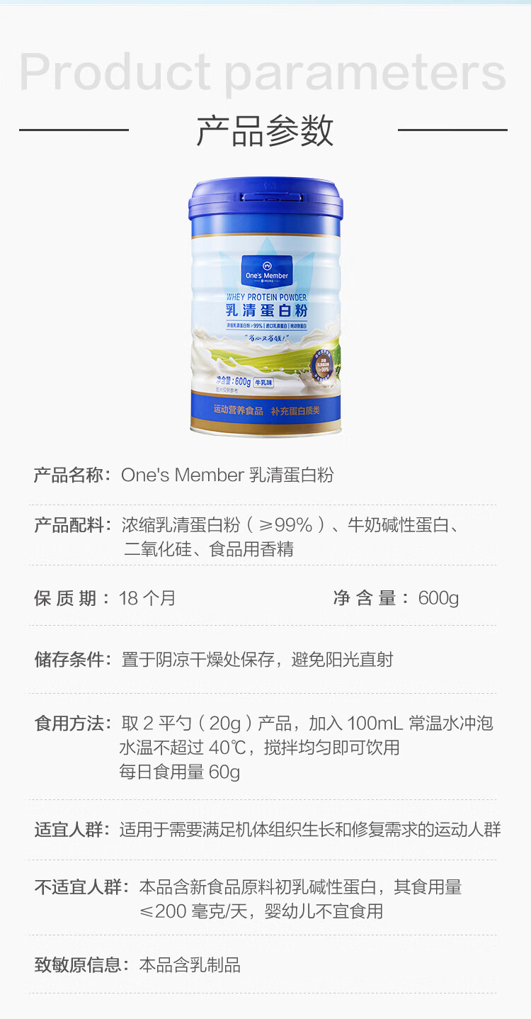 1号会员店乳清蛋白粉600g 超99%乳清蛋白增强免疫力高蛋白质营养成人中老年