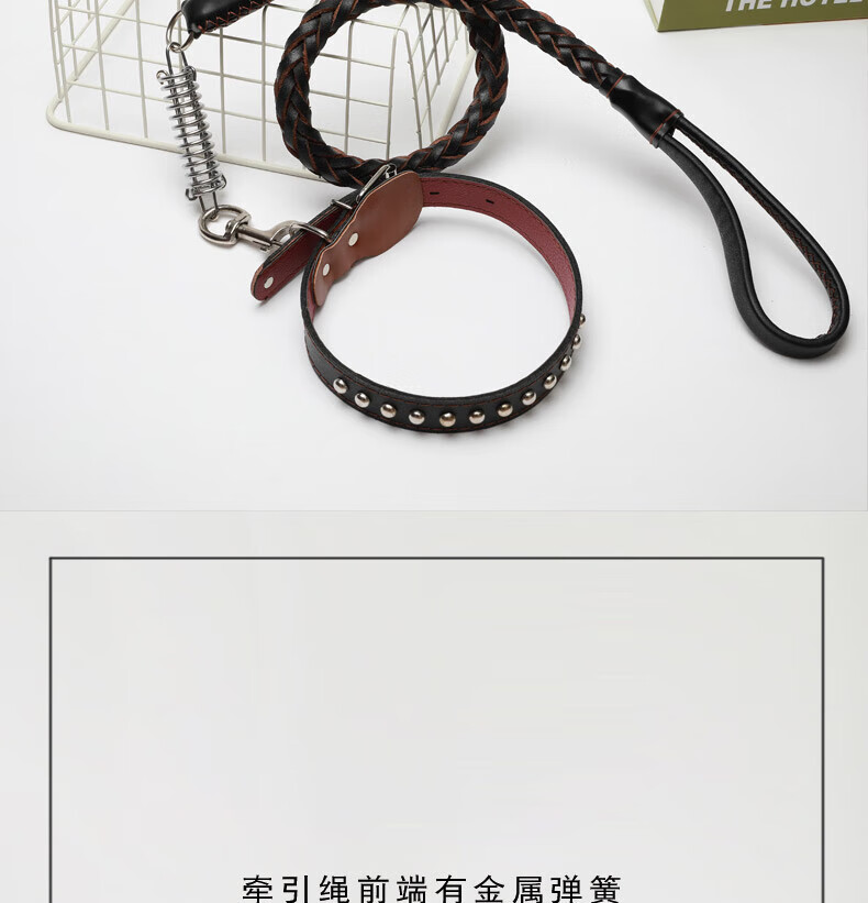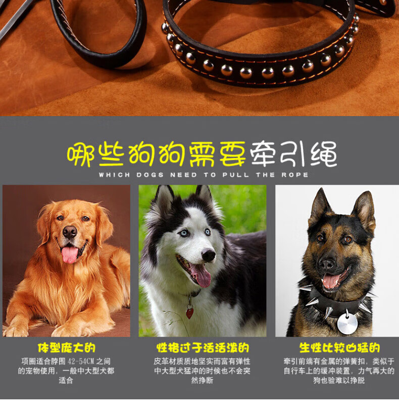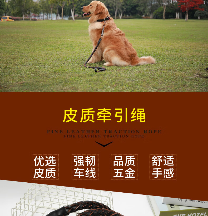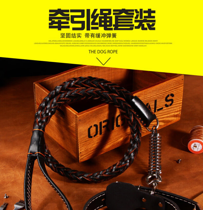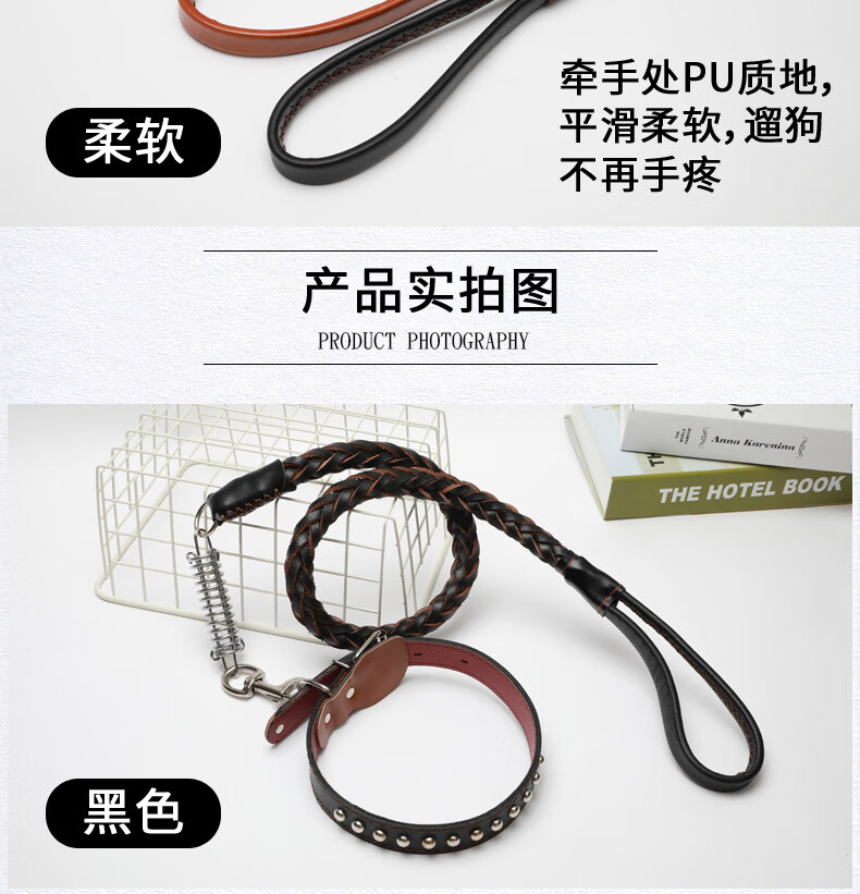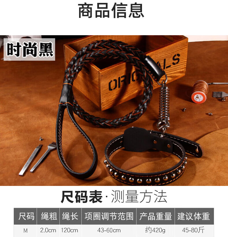 茨格曼狗绳2件套牵引绳狗链子项圈遛狗防爆冲金毛宠物大型中型犬狗链M