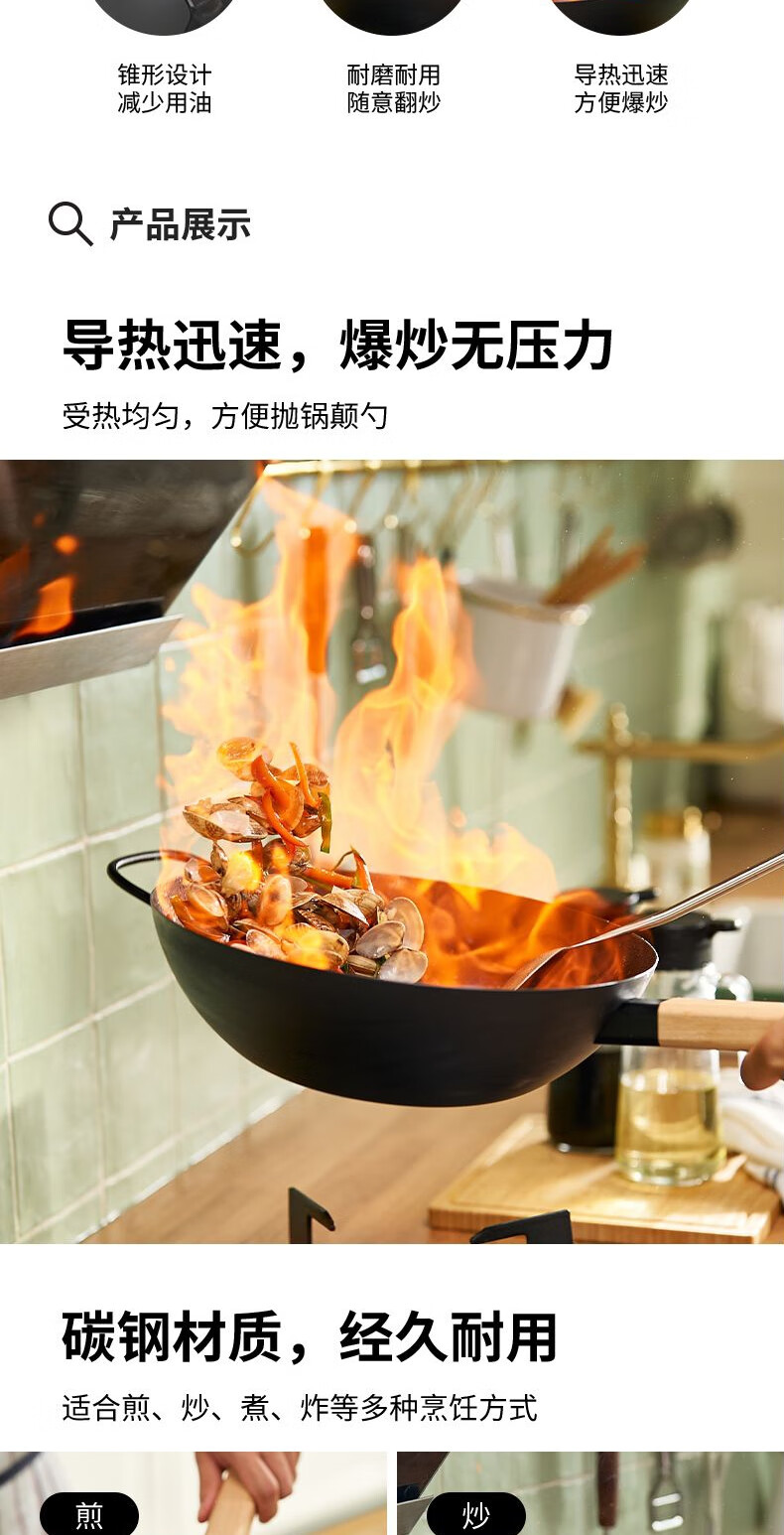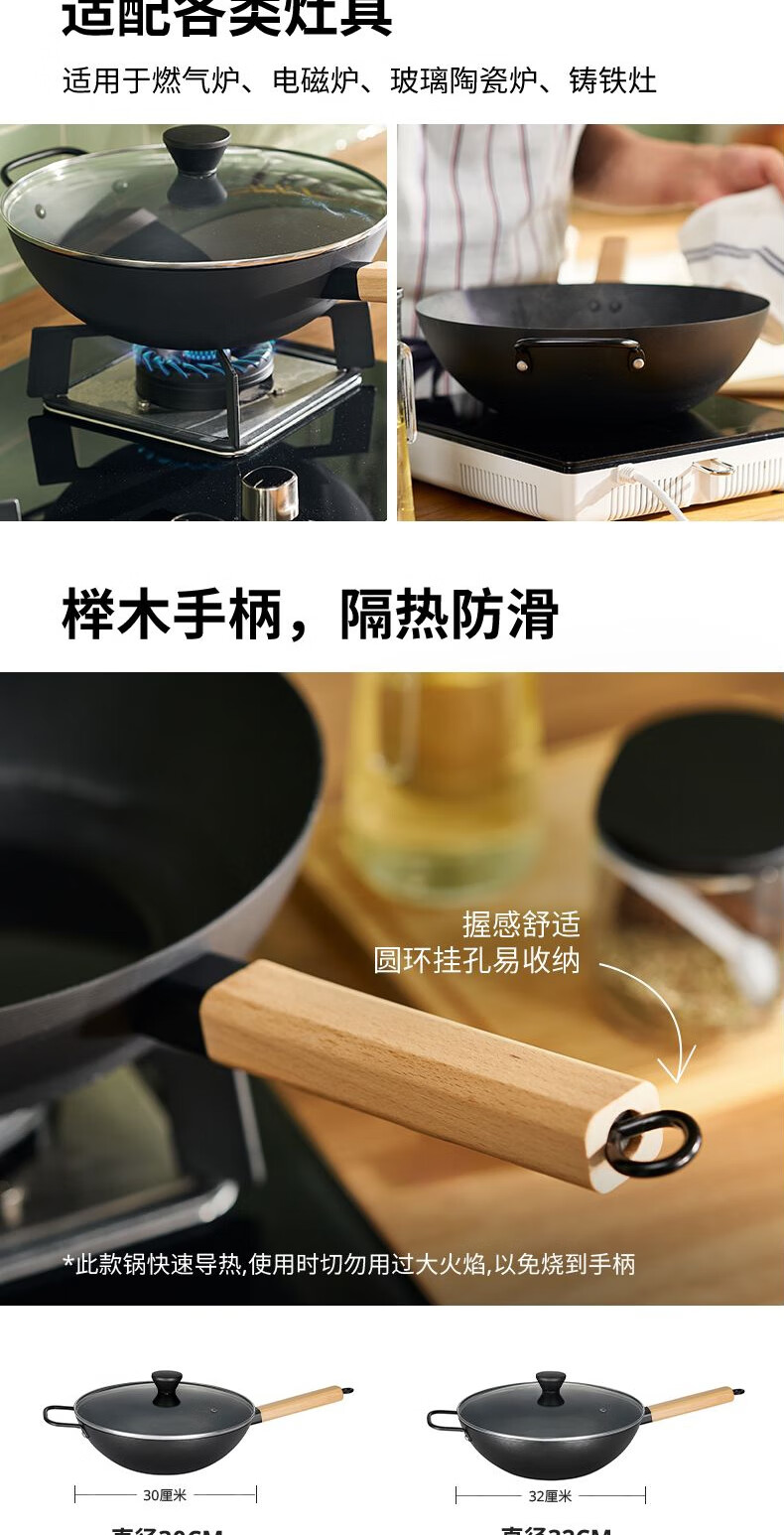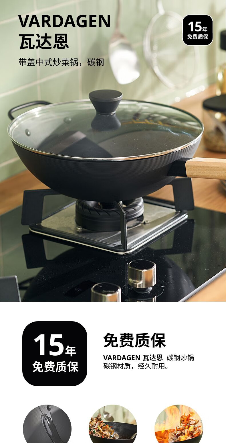 宜家(IKEA)VARDAGEN瓦达恩带盖中式烧菜锅铁锅家用炒菜燃气灶专用 带盖中式炒菜锅 30cm 1-3人份