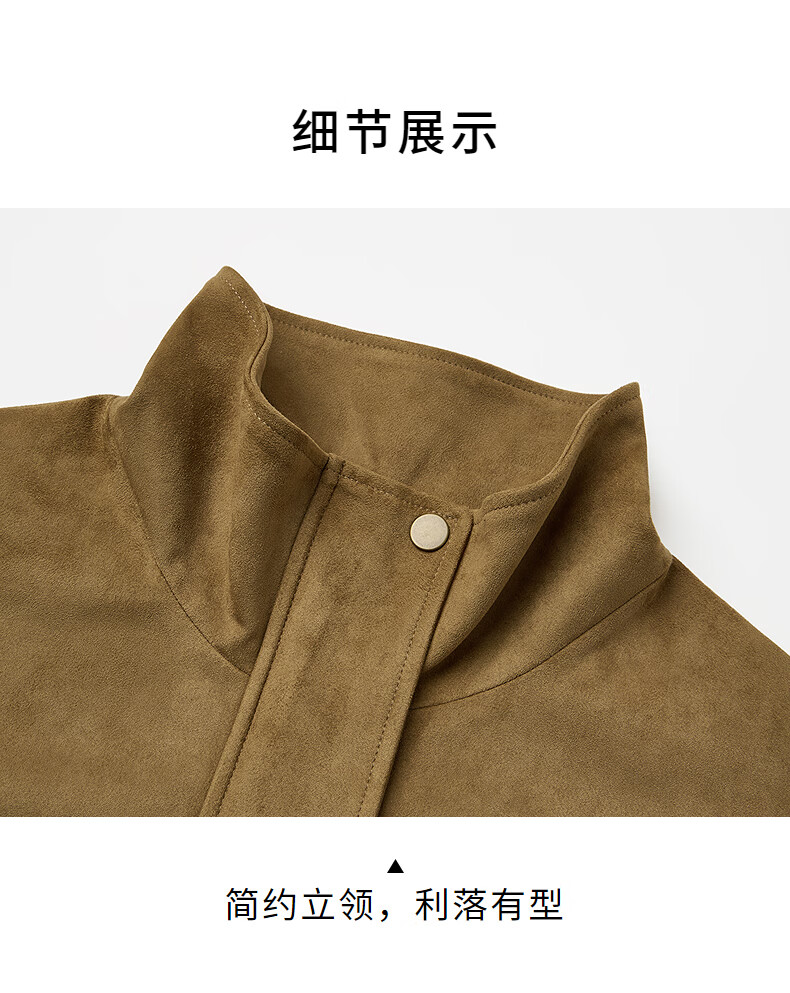 热风女士夹克外套上衣2025年秋季新款仿麂皮绒外套复古立领外套 144黄棕 L
