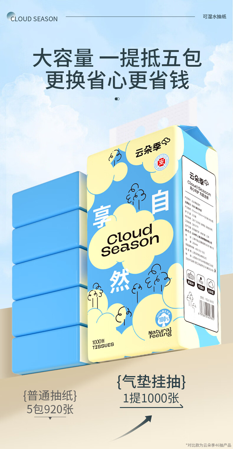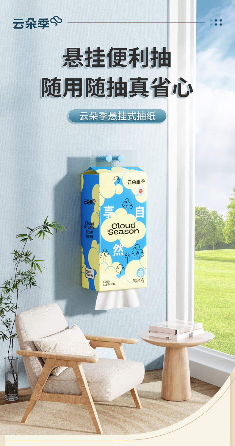 云朵季悬挂式抽纸纸巾优等品质面巾纸餐巾纸卫生纸家用实惠卫生纸厕纸 1000张*3提