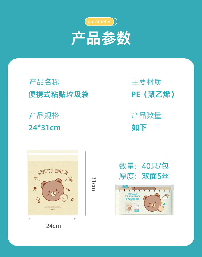 特瑞洁车载垃圾袋2.5丝160只学生课桌寝室厨房多用垃圾袋无痕贴收纳清洁