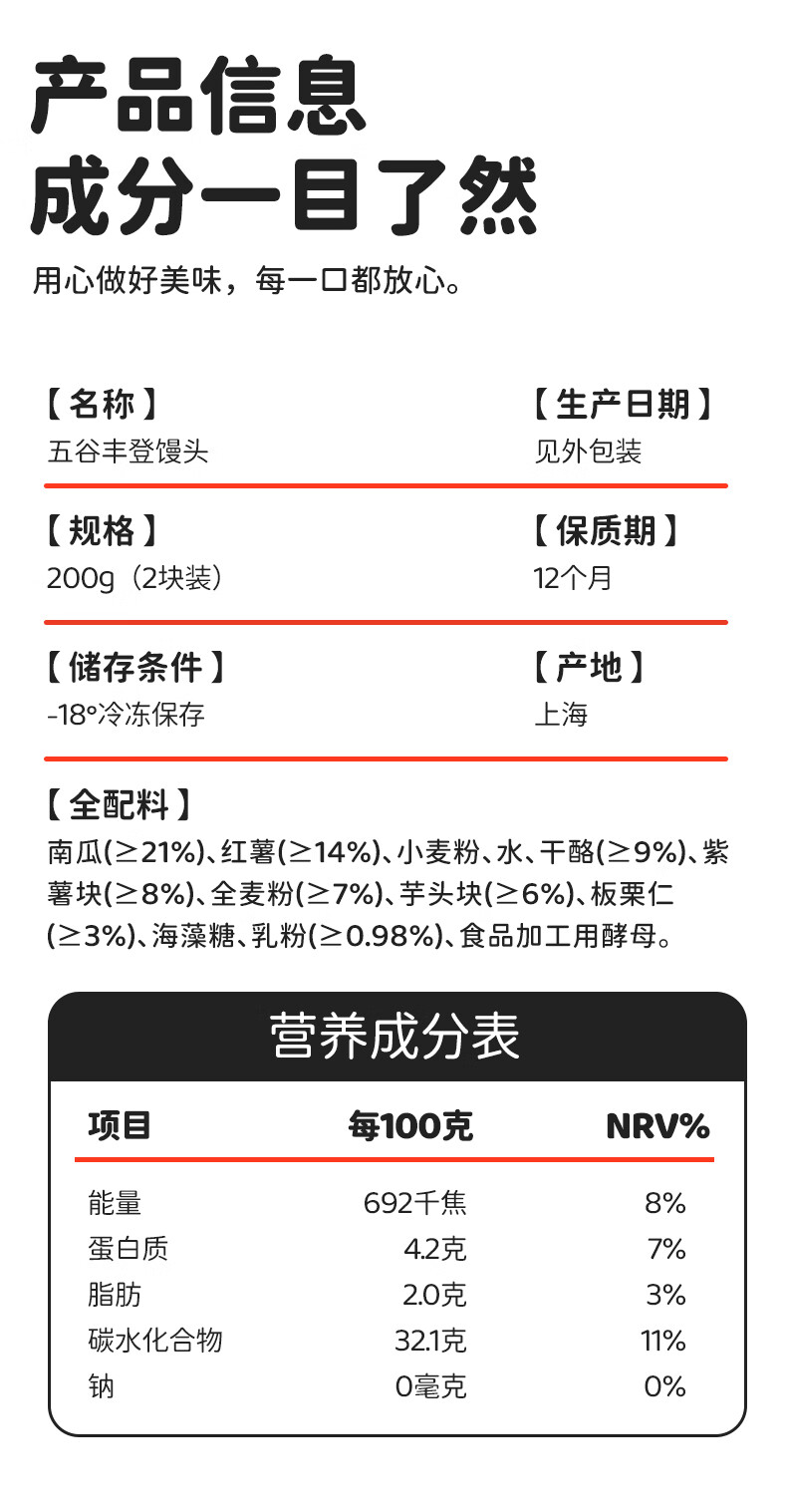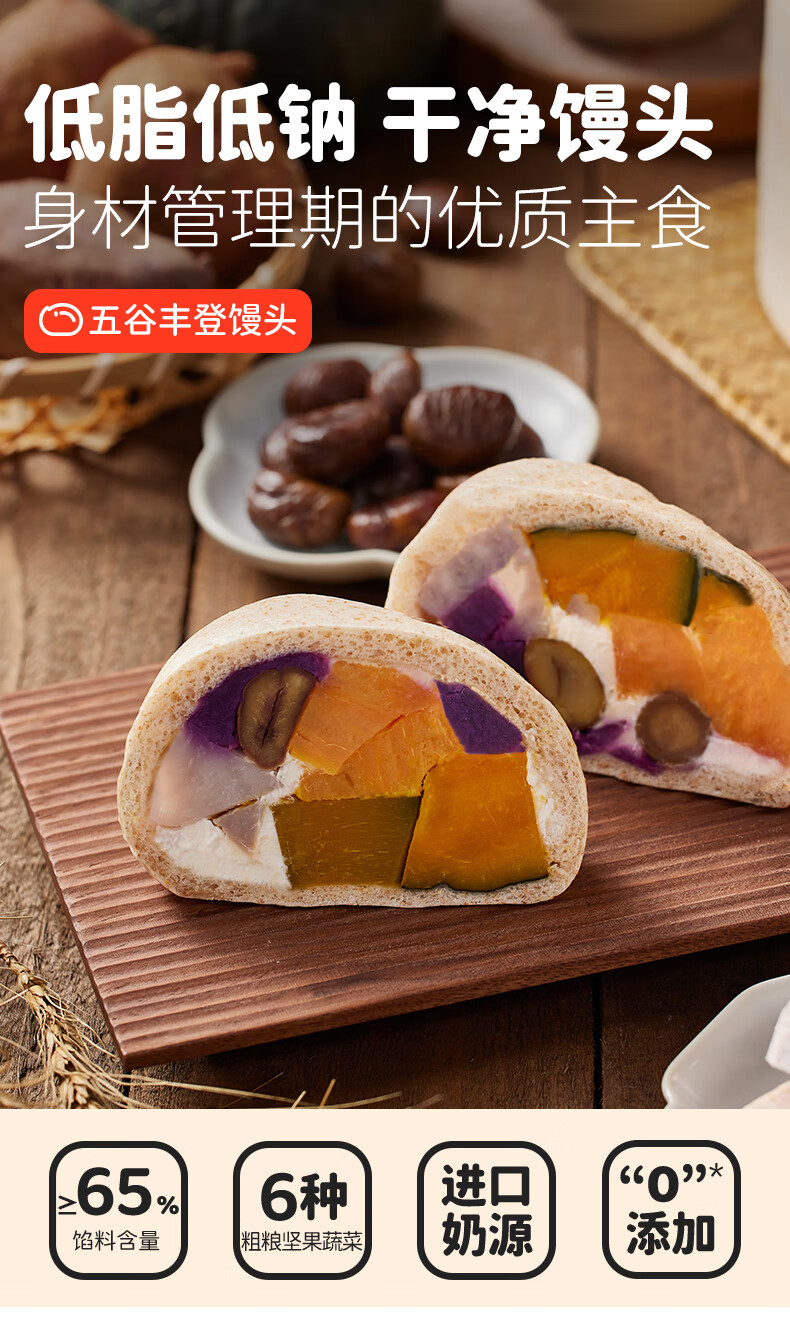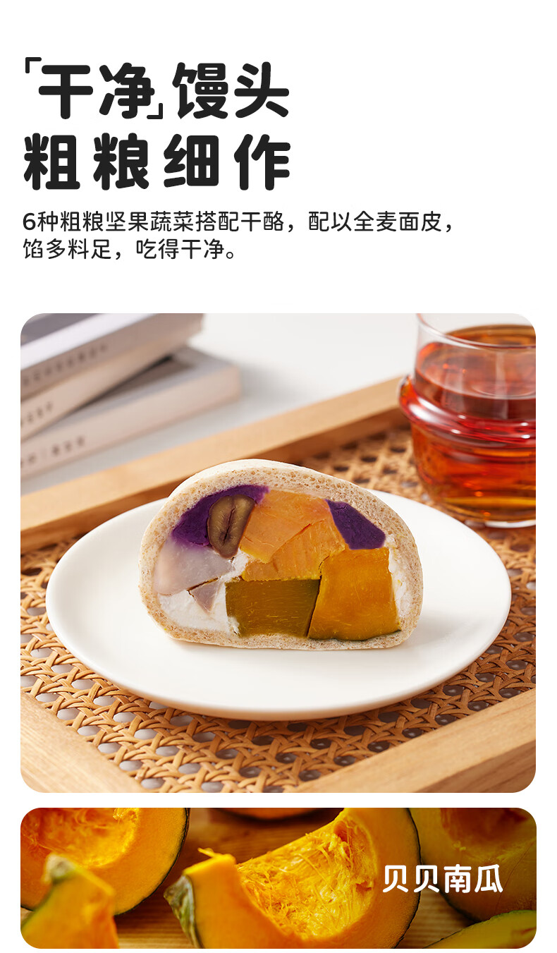 蒸笼头五谷丰登馒头200g*2袋共4块 儿童半成品营养早餐 速食粗粮馒头