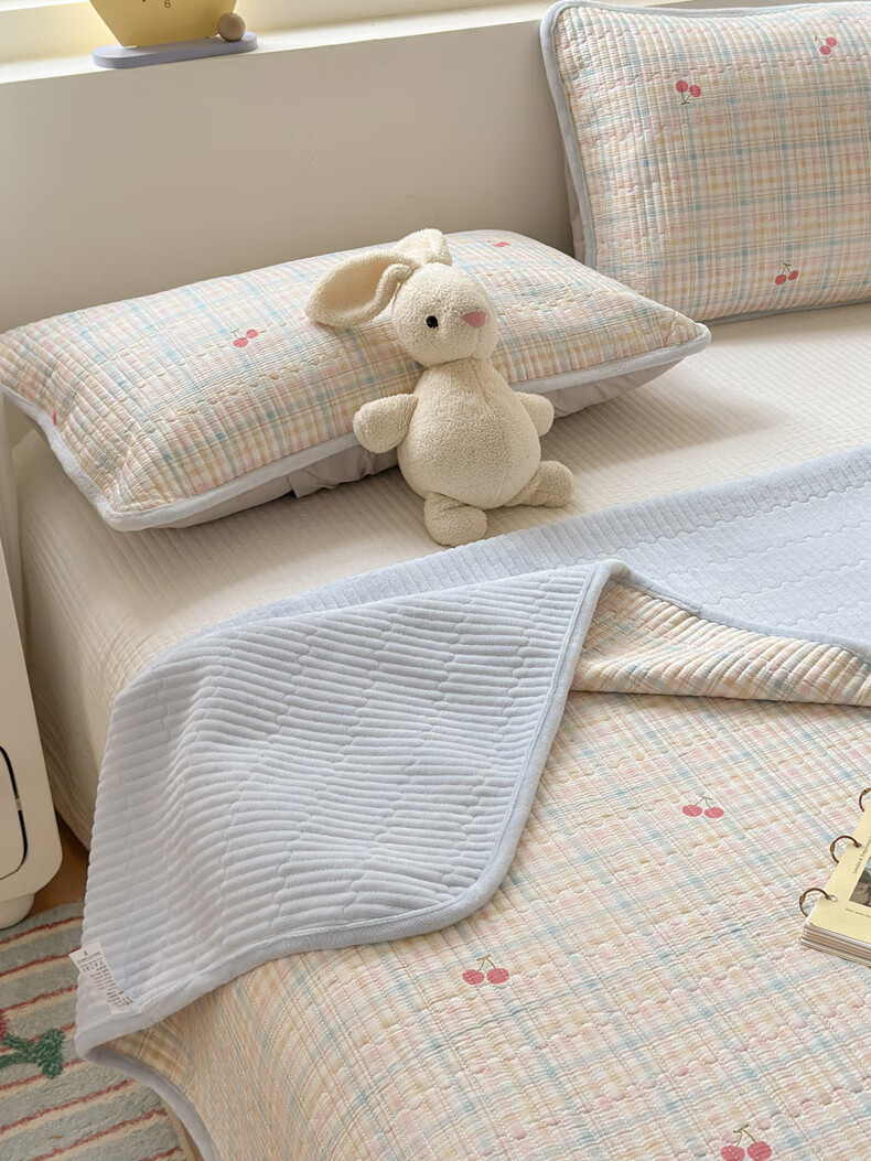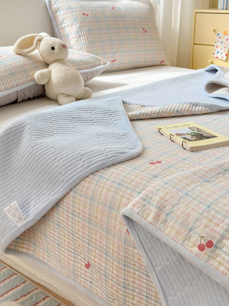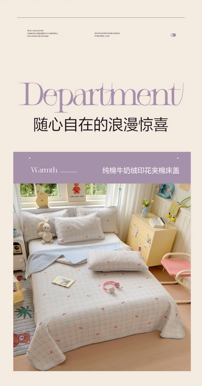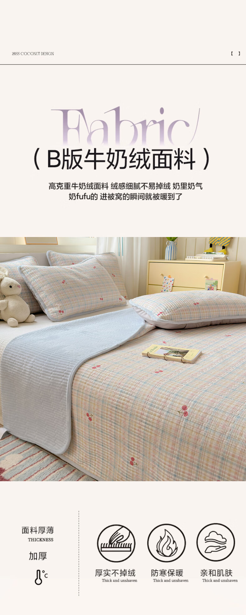 苏萱一面全棉一面加绒床盖单件冬季加厚双面可用牛奶绒纯棉榻榻米床单 花园小兔 225x250cm床盖+枕套一对