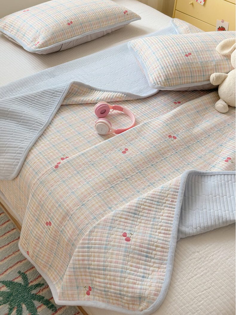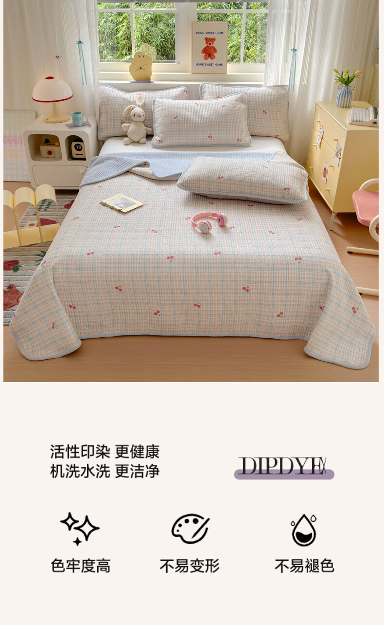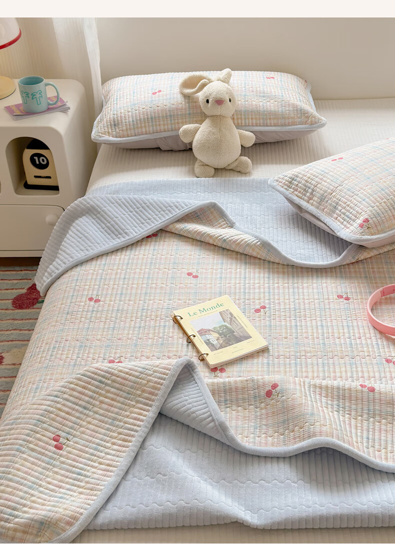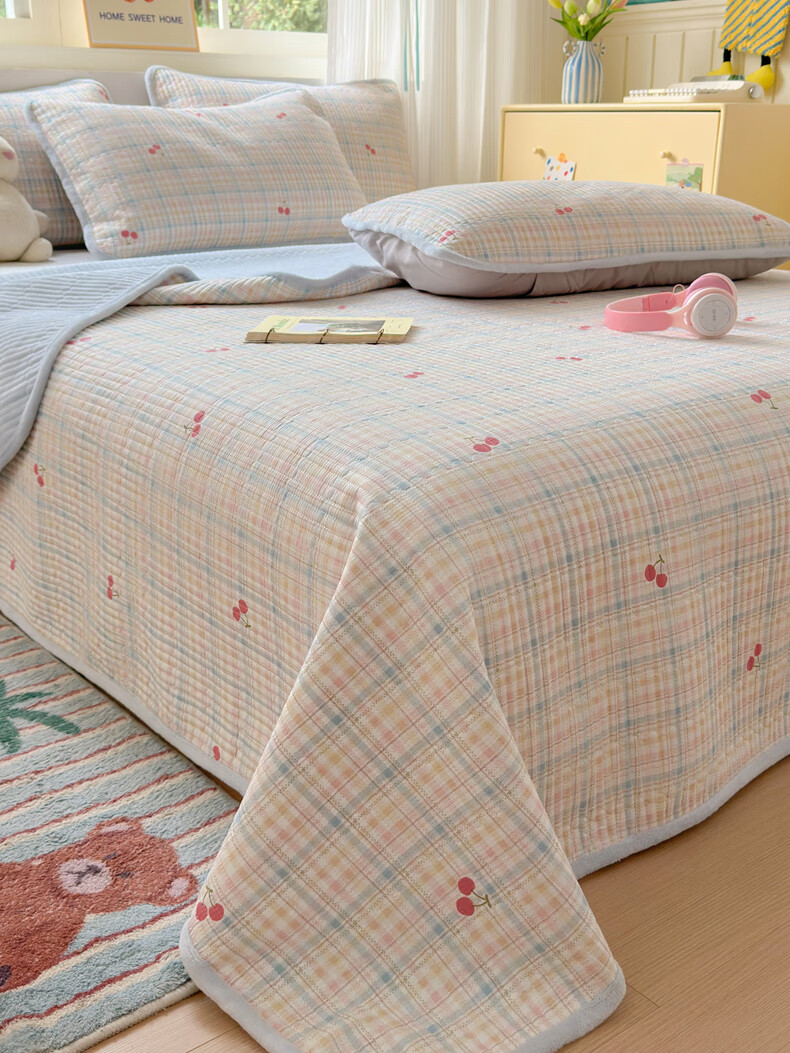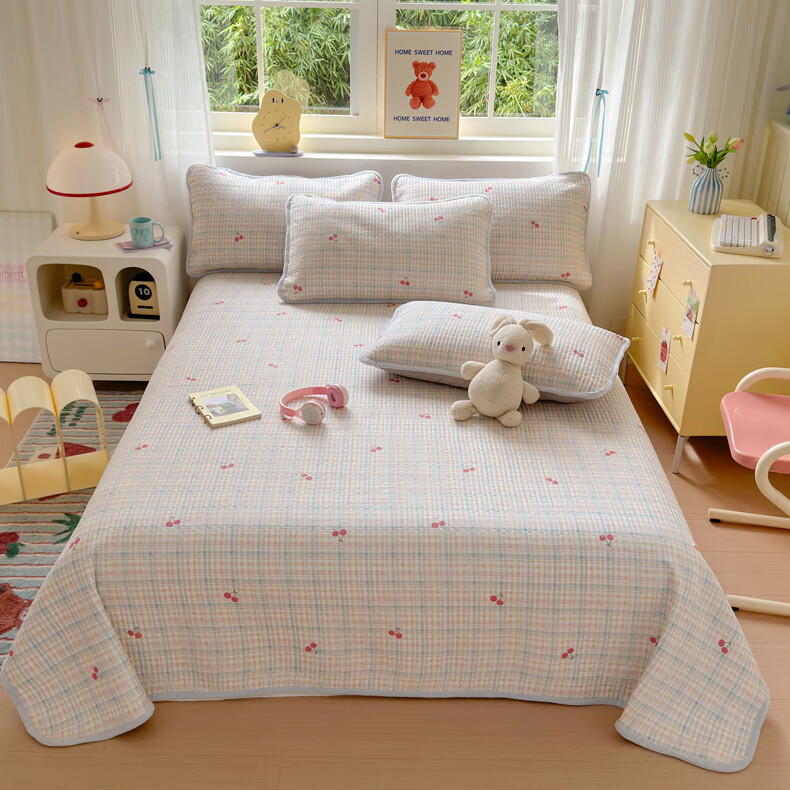 苏萱一面全棉一面加绒床盖单件冬季加厚双面可用牛奶绒纯棉榻榻米床单 花园小兔 225x250cm床盖+枕套一对