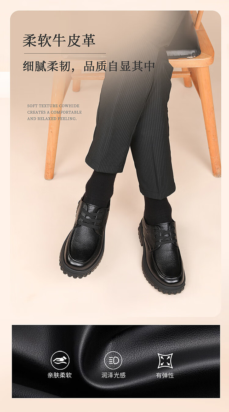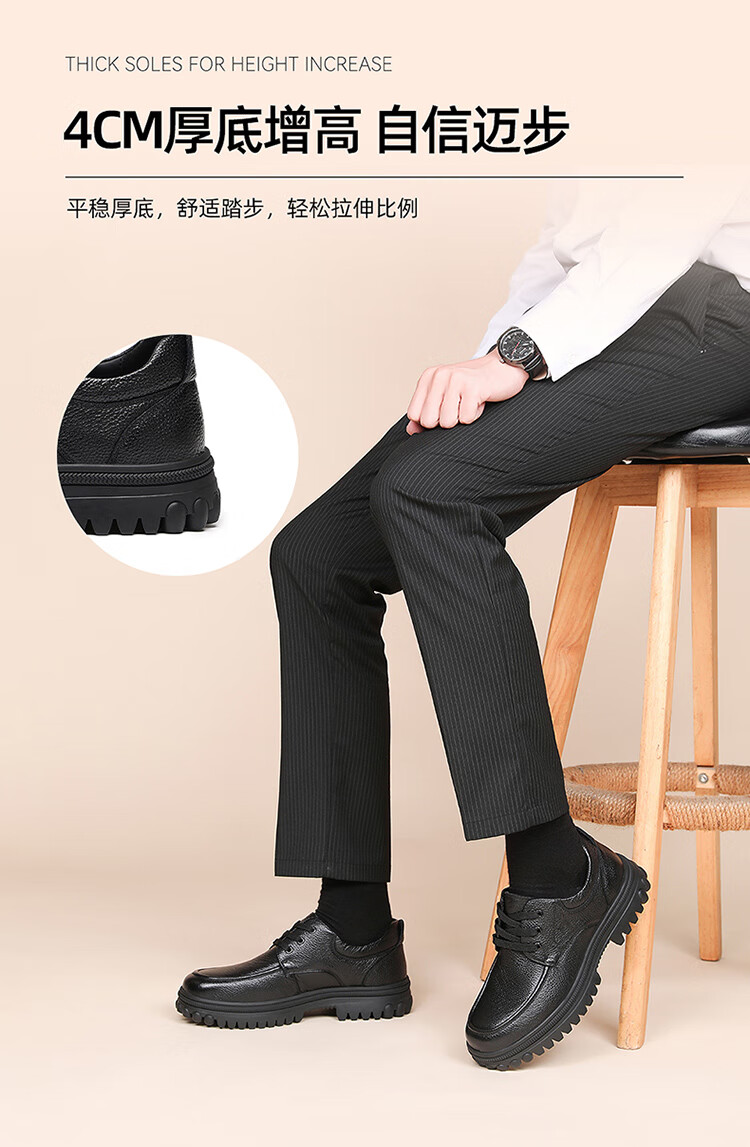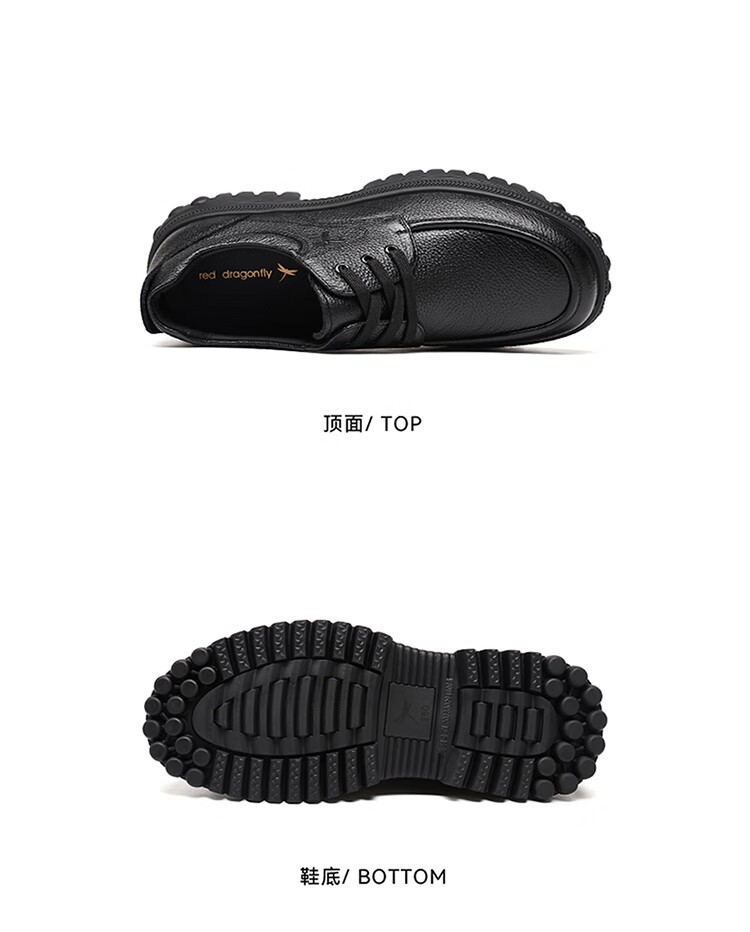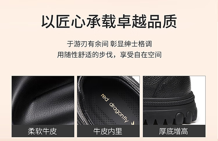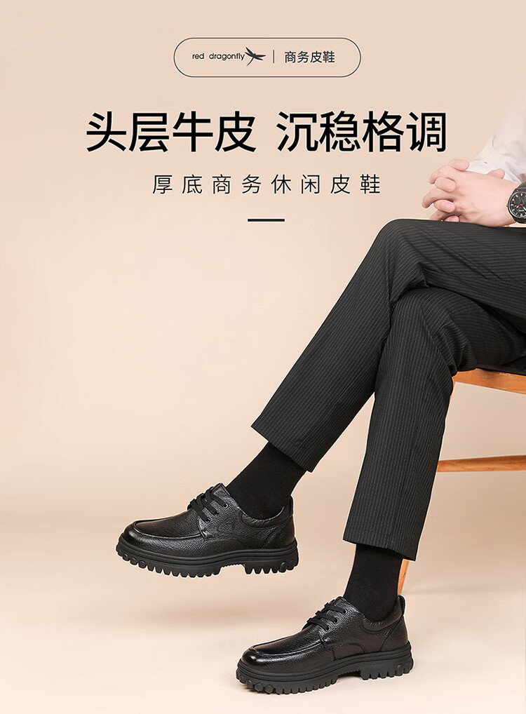 红蜻蜓皮鞋男透气牛皮商务休闲鞋增高轻便百搭正装鞋子WLA350211黑色40