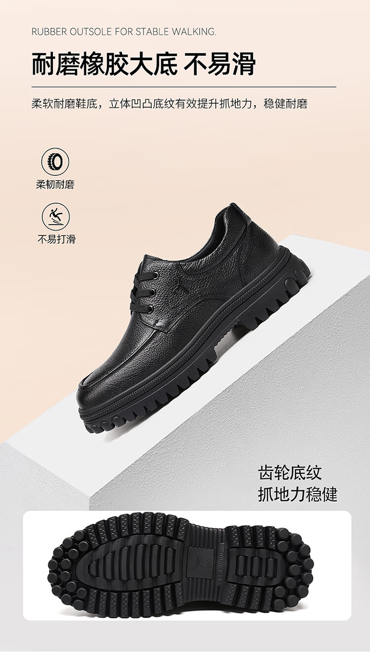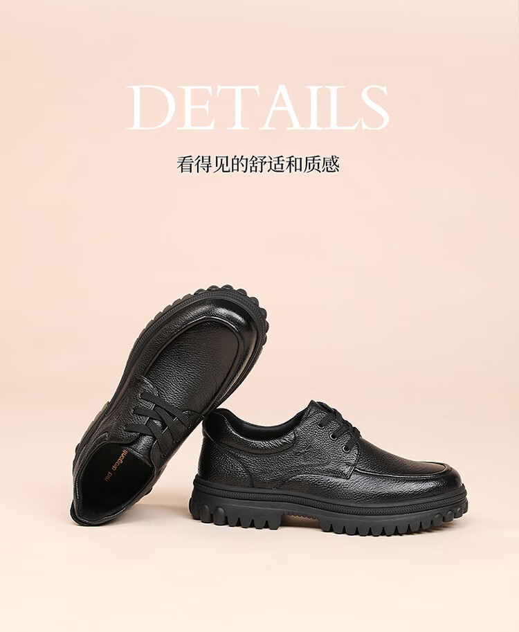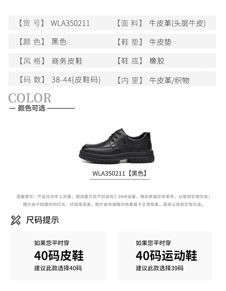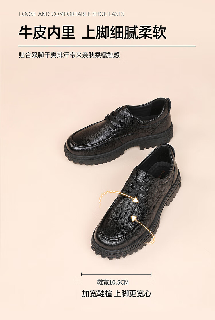红蜻蜓皮鞋男透气牛皮商务休闲鞋增高轻便百搭正装鞋子WLA350211黑色40