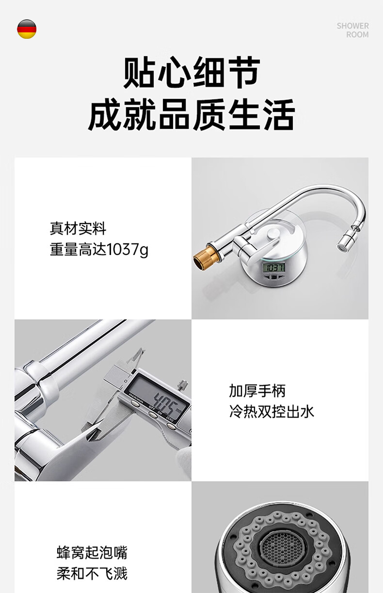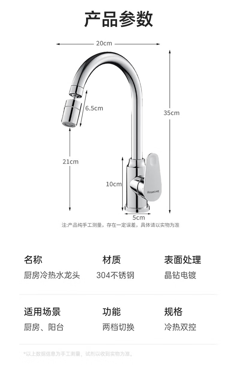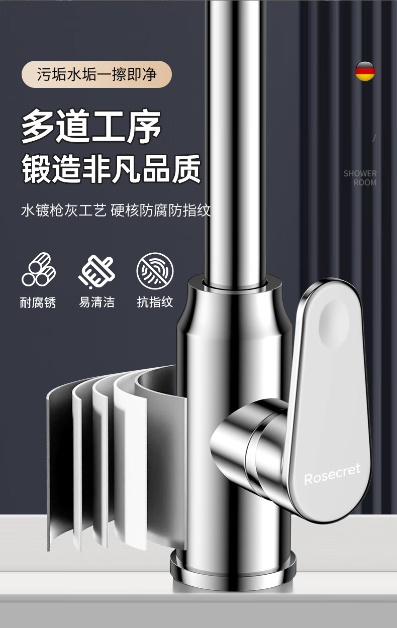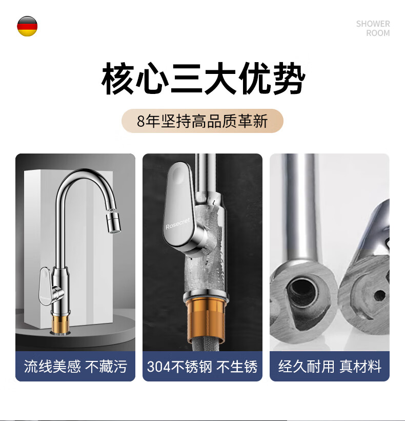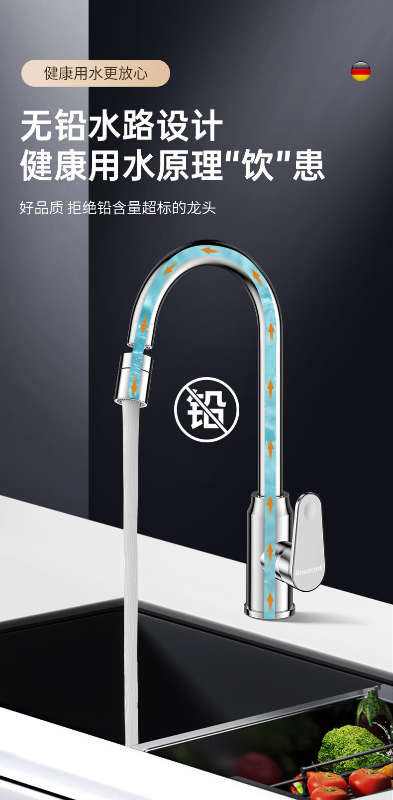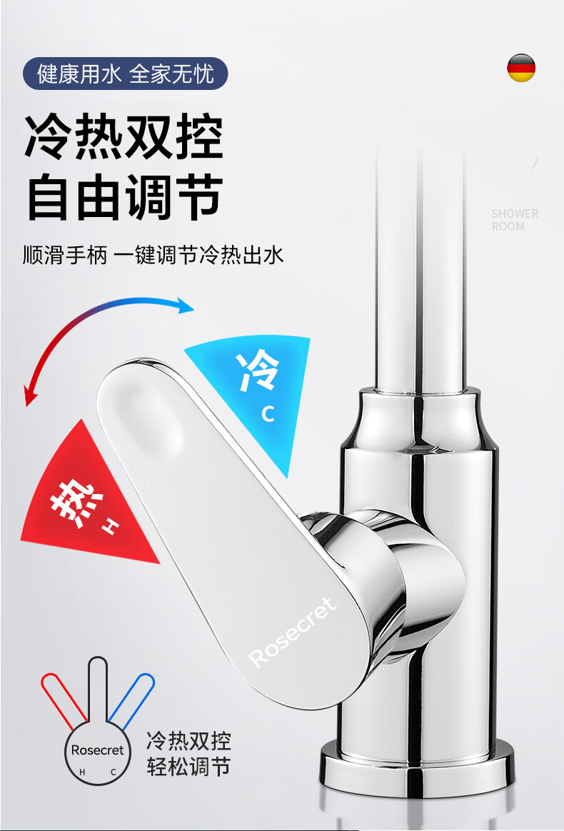 Rosecret【德国】304不锈钢厨房水龙头高抛冷热水器二合一万向洗菜盆龙头 两档增压厨房龙头【电镀银】 加厚加重主体丨送80cm冷热进水管*2