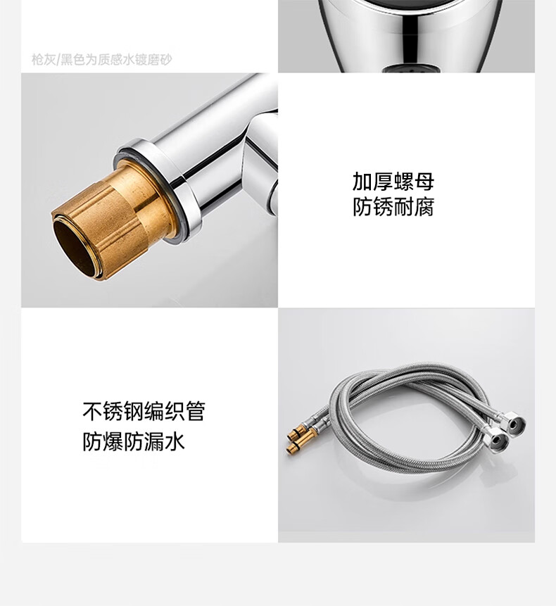 Rosecret【德国】304不锈钢洗脸盆水龙头家用卫生间洗手池台上盆万向龙头 招财猫三档面盆龙头【枪灰色】 增压防溅丨配80cm冷热进水管*2