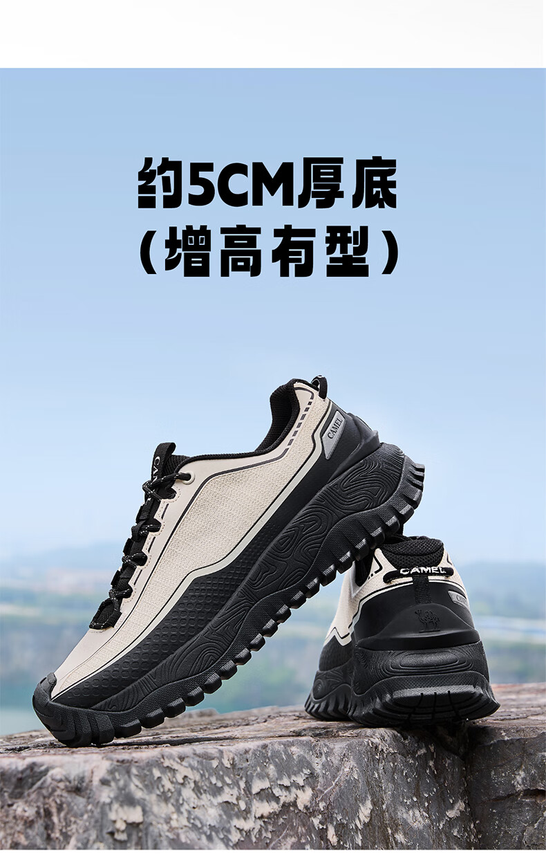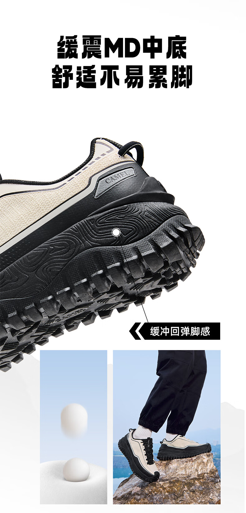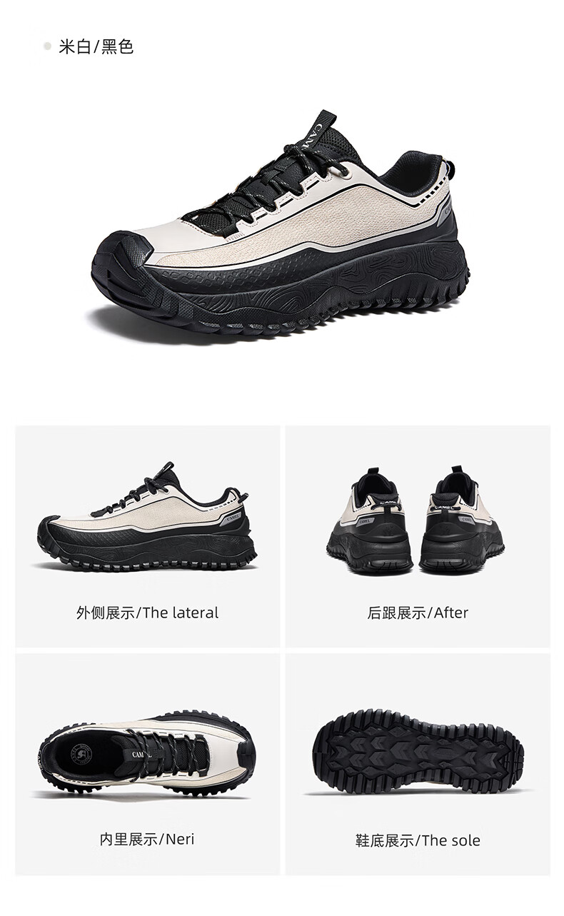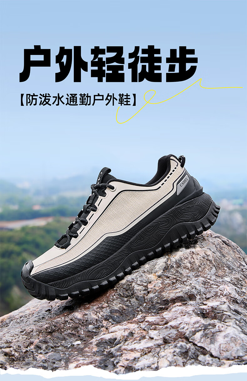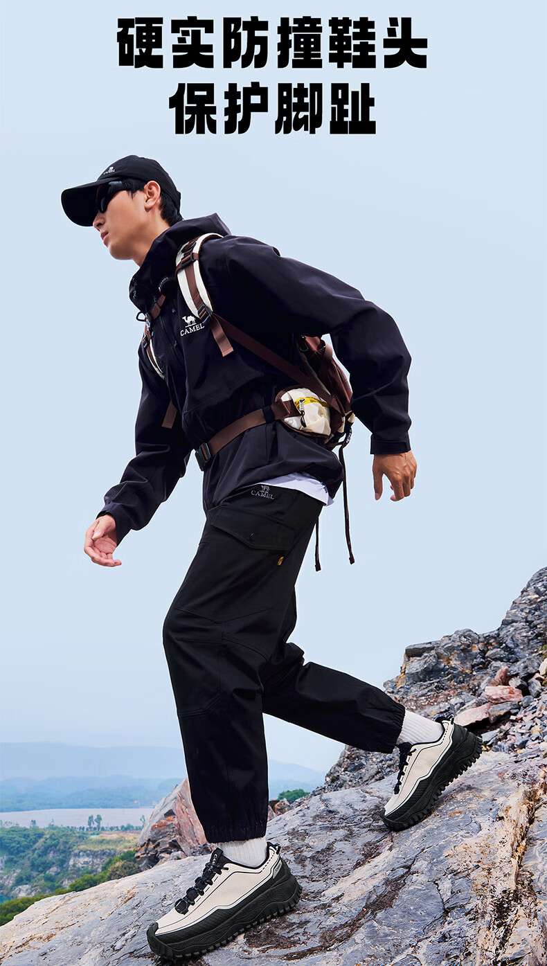 骆驼男鞋登山鞋2025秋季新款防泼水防滑防撞舒适通勤低帮城市户外鞋 G15A171030 米白/黑 39