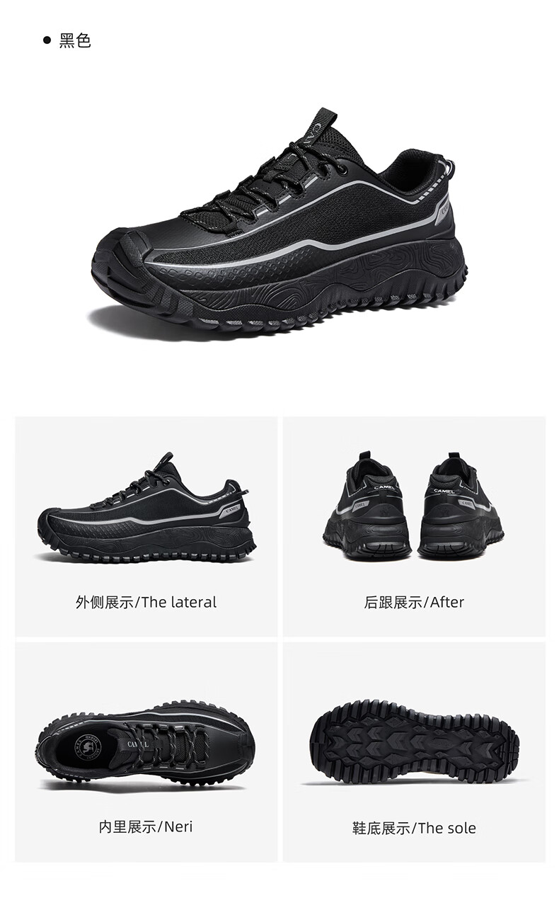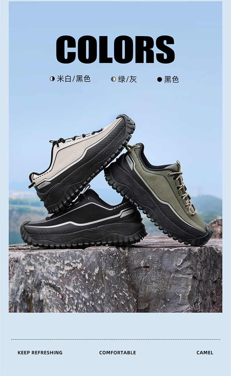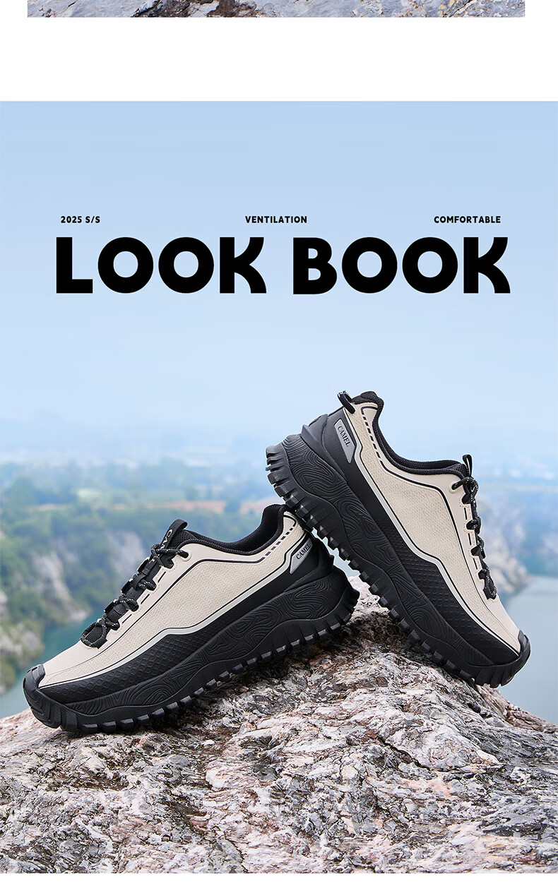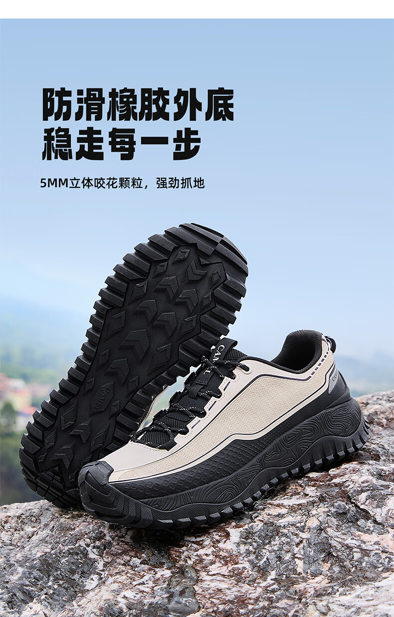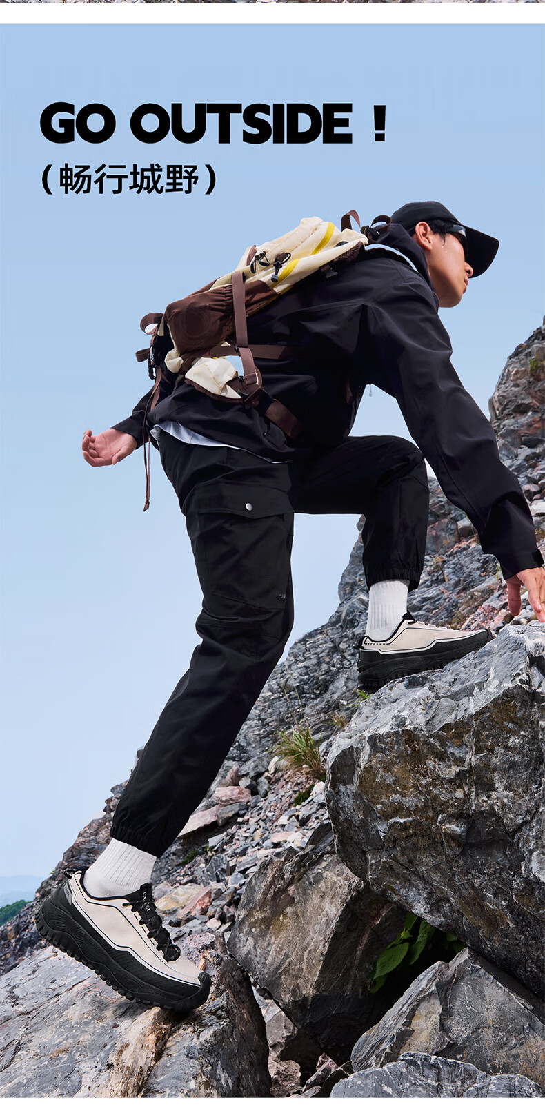 骆驼男鞋登山鞋2025秋季新款防泼水防滑防撞舒适通勤低帮城市户外鞋 G15A171030 米白/黑 39