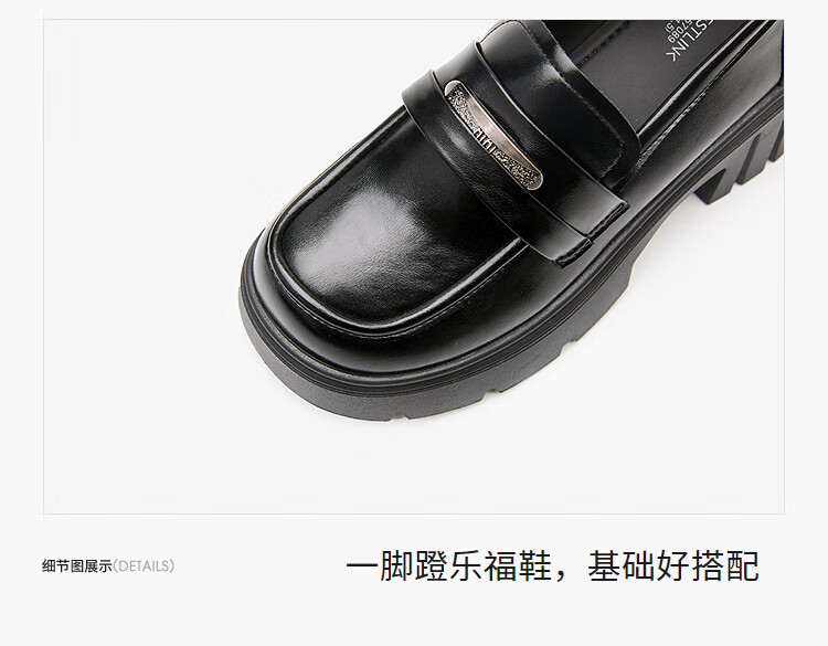 星期六(St&Sat)复古真皮乐福鞋女鞋2025新款金属扣英伦牛皮软底单鞋SZSSD1111P55 黑色 37