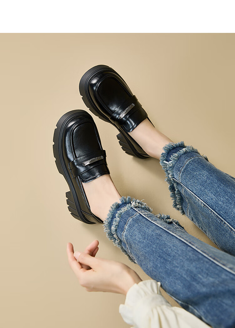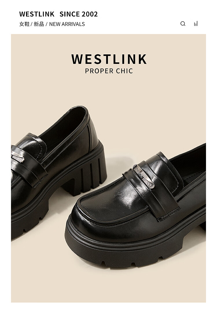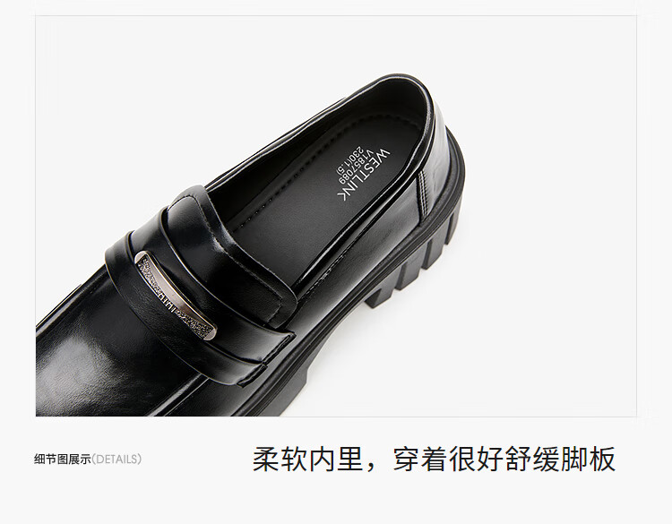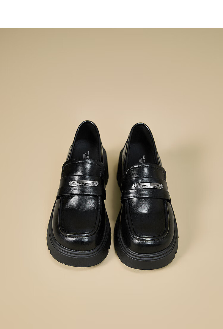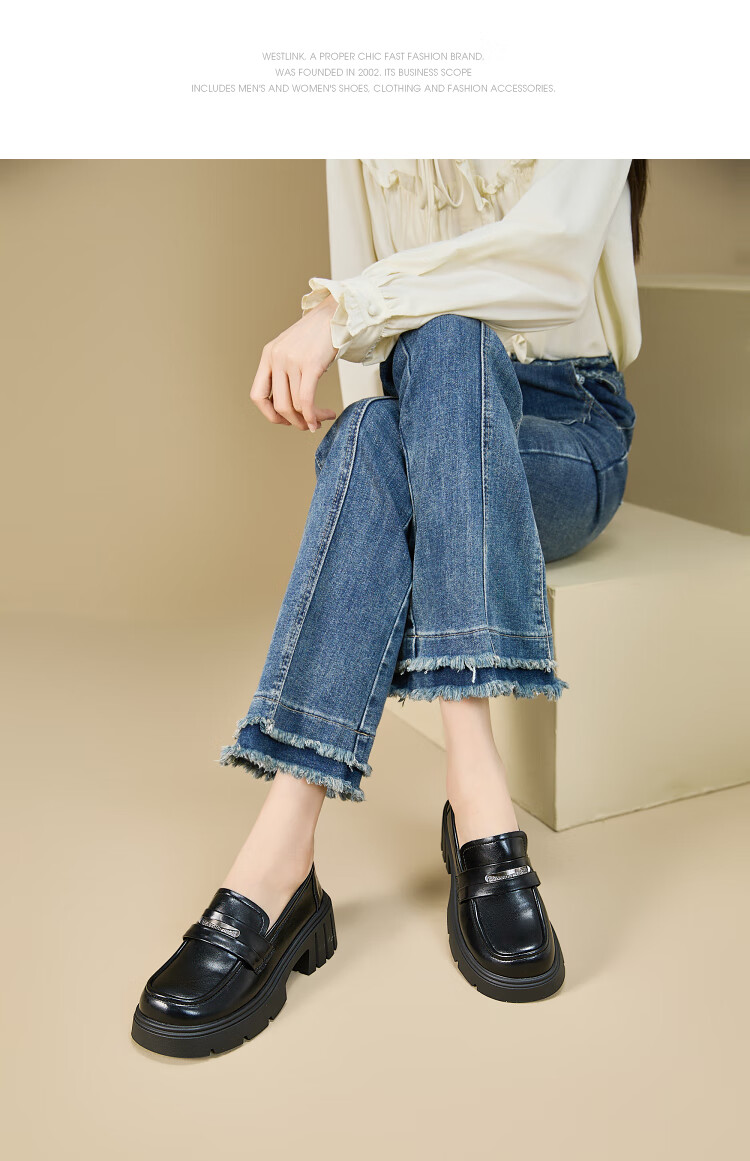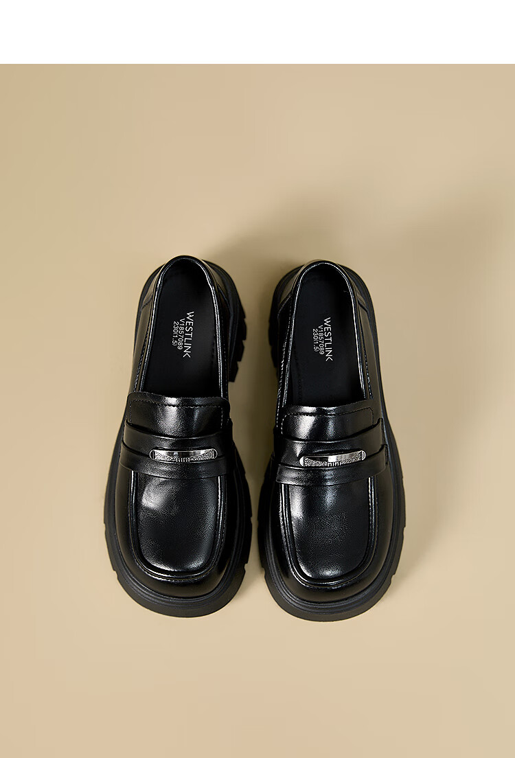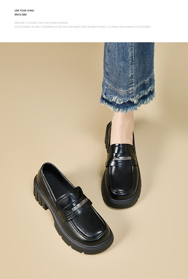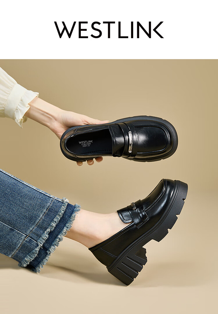 西遇(Westlink)一脚蹬乐福鞋女2025新款秋季不累脚单鞋增高厚底黑色小皮鞋 黑色 37 (235)