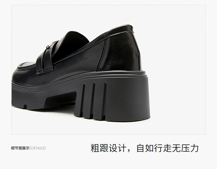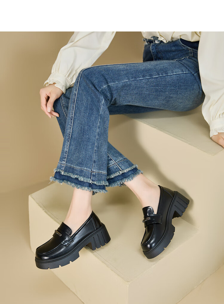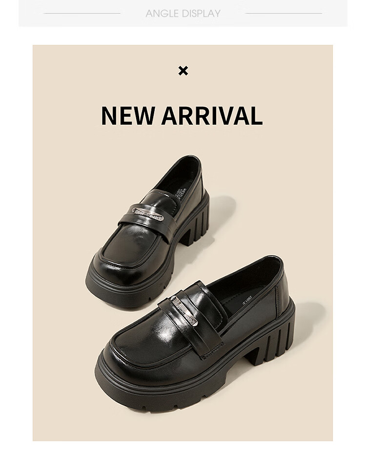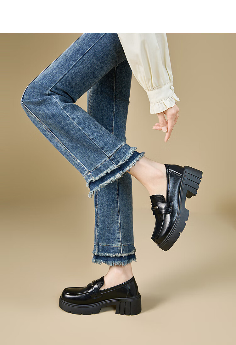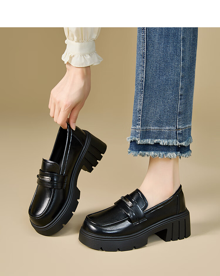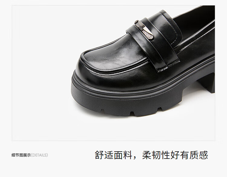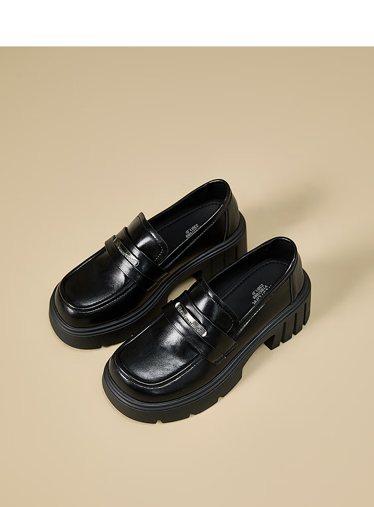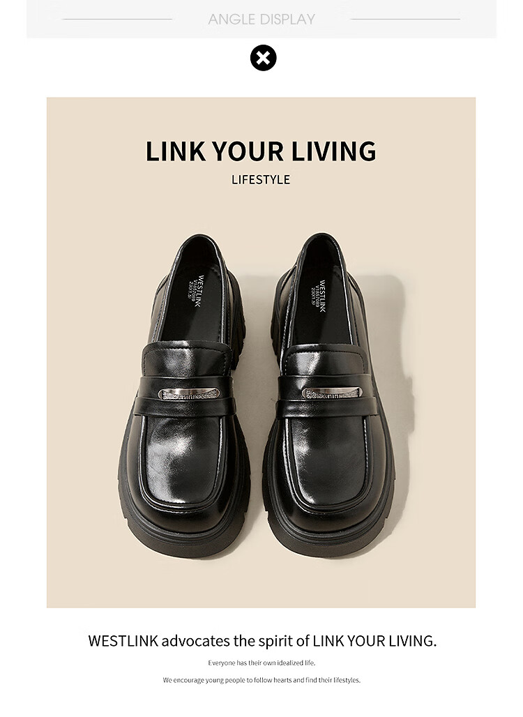 西遇(Westlink)一脚蹬乐福鞋女2025新款秋季不累脚单鞋增高厚底黑色小皮鞋 黑色 37 (235)
