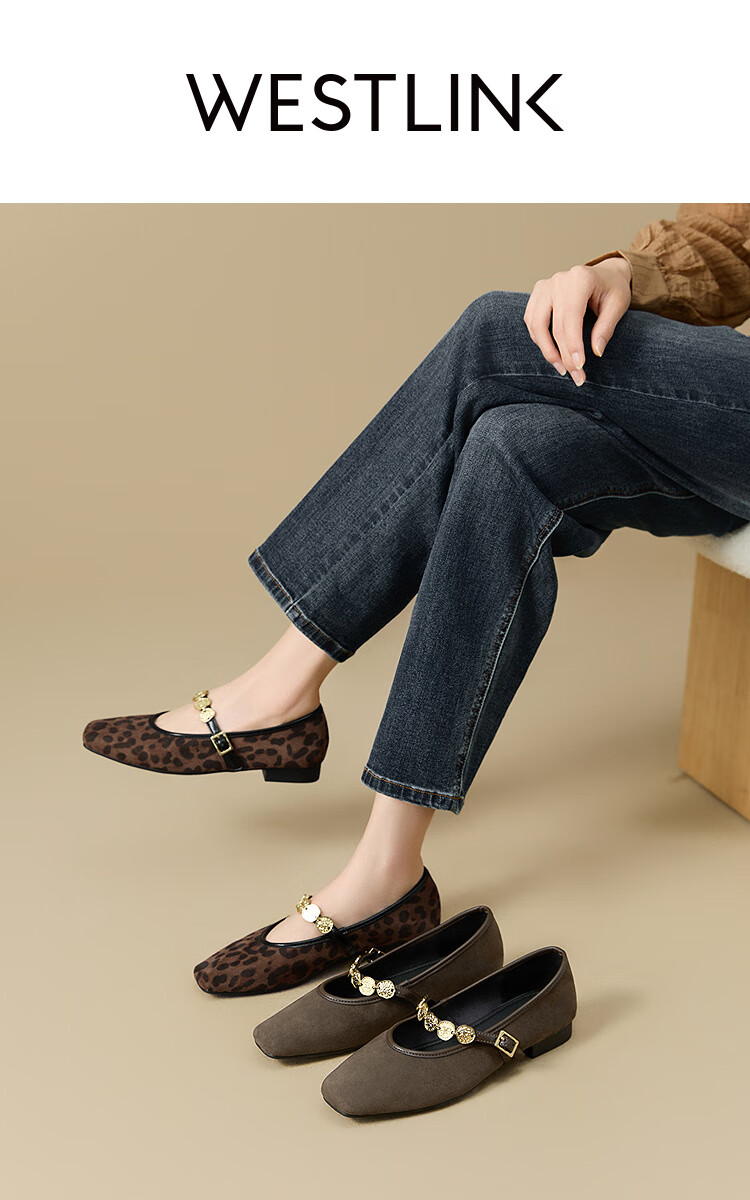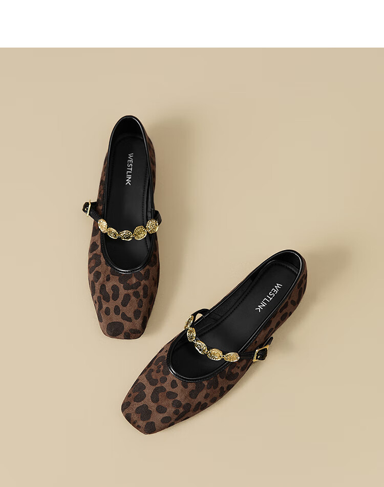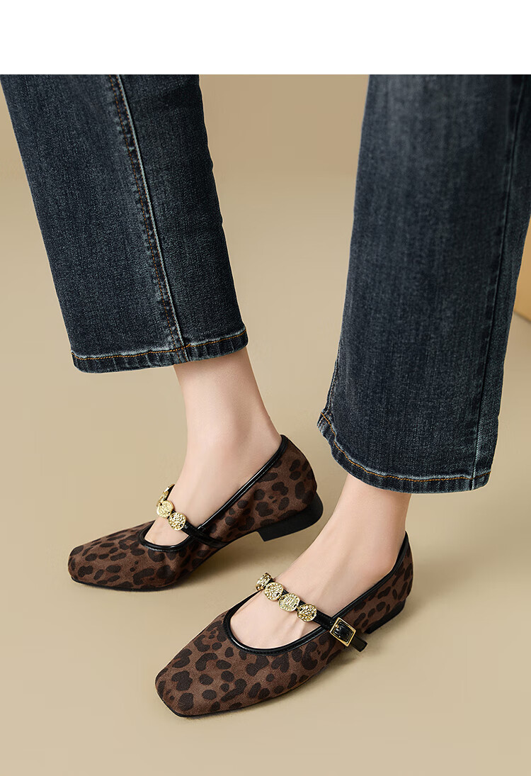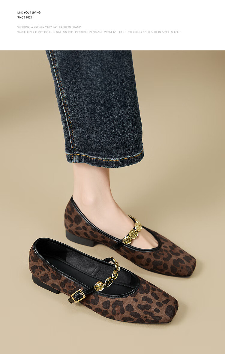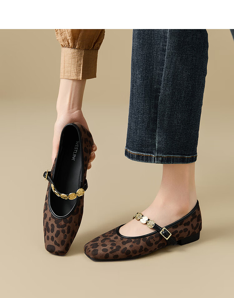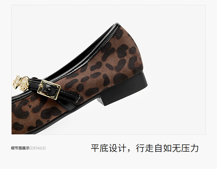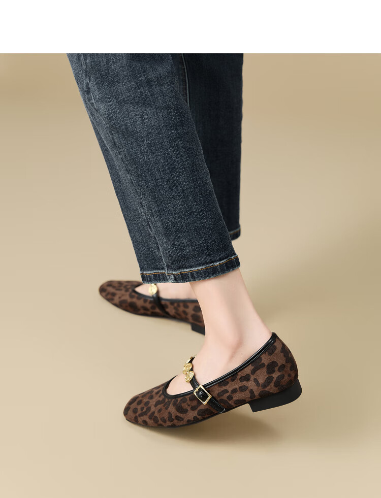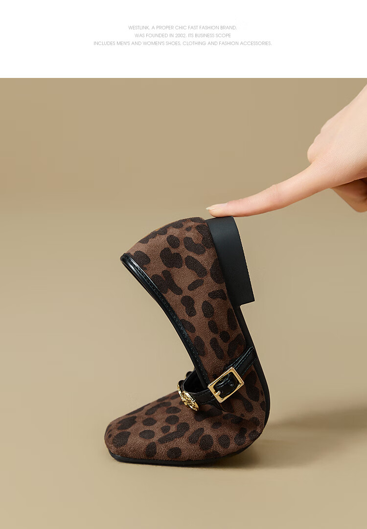 西遇复古玛丽珍鞋女2025新款秋季绒面豹纹平底鞋软底单鞋 深绿色 (预售9月26) 36 (230)