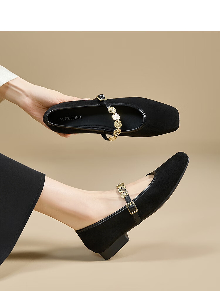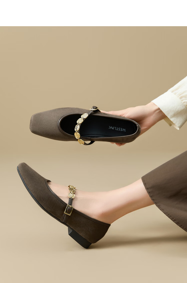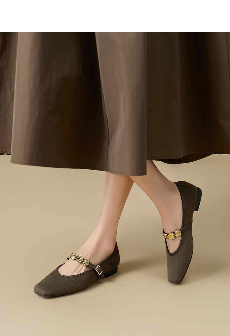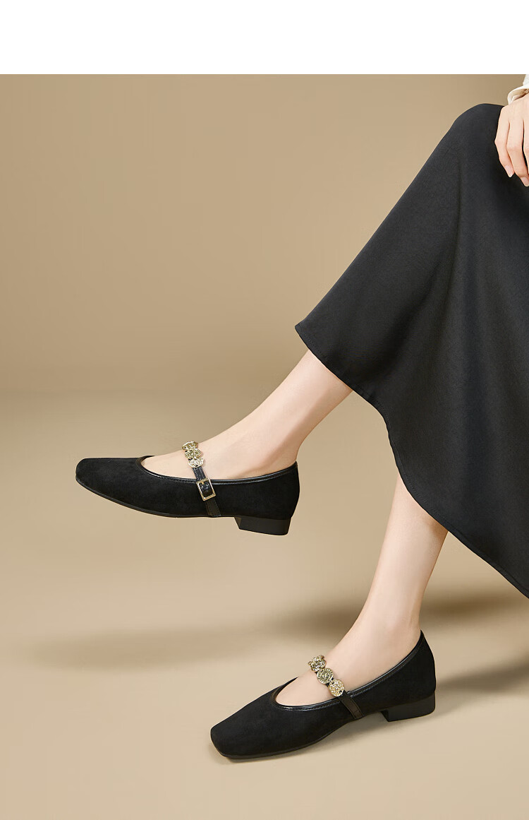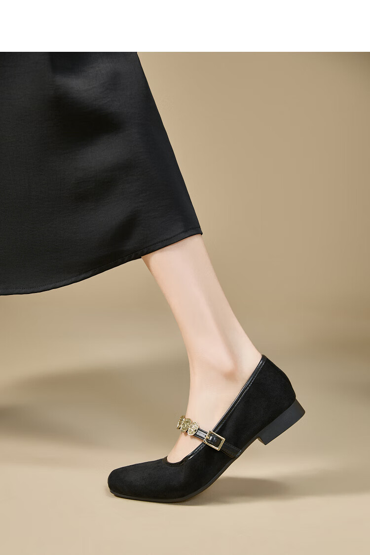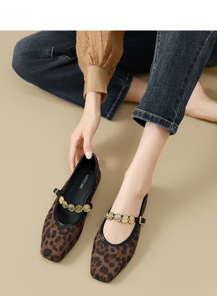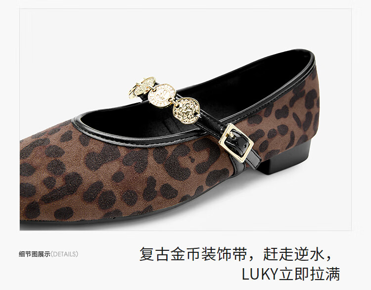 西遇复古玛丽珍鞋女2025新款秋季绒面豹纹平底鞋软底单鞋 深绿色 (预售9月26) 36 (230)