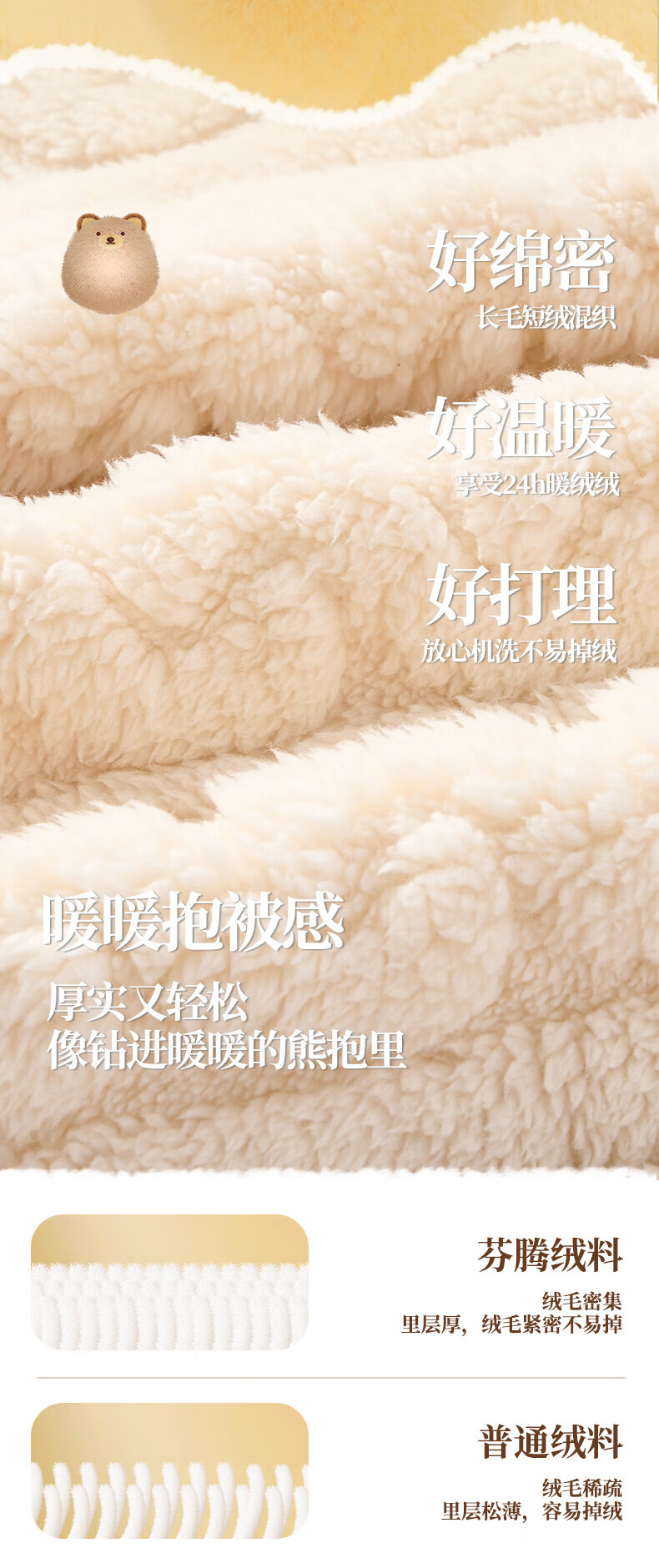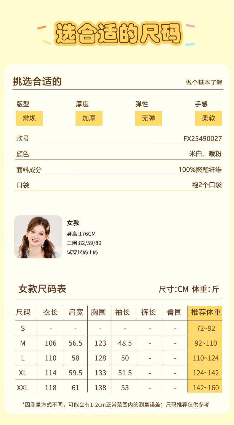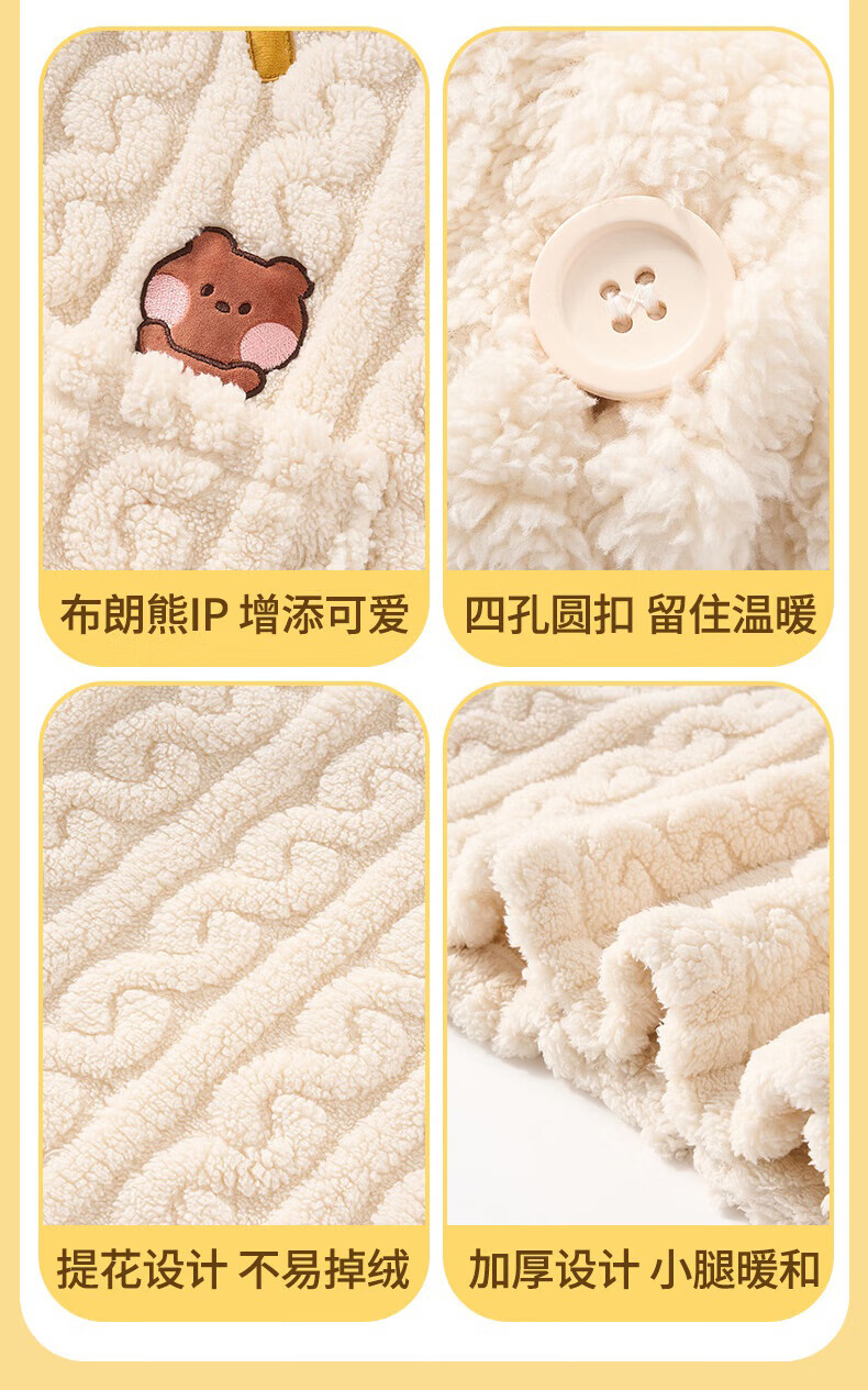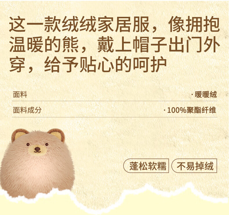 芬腾睡袍女【布朗熊IP联名】双面暖绒秋冬连帽长袖外穿加厚裙子 米百 XL